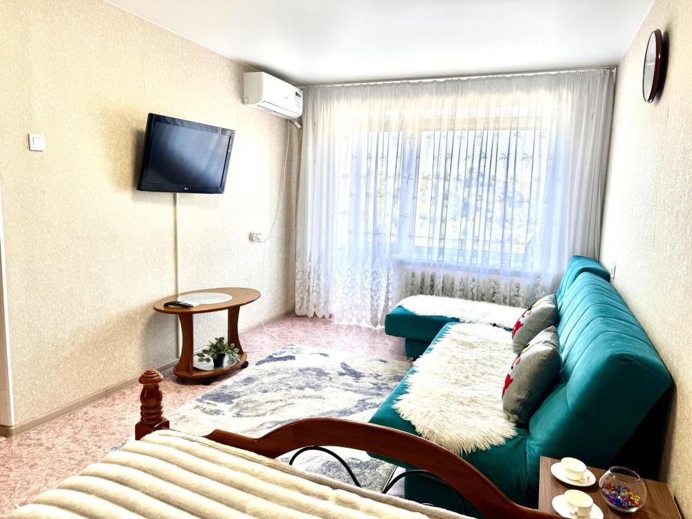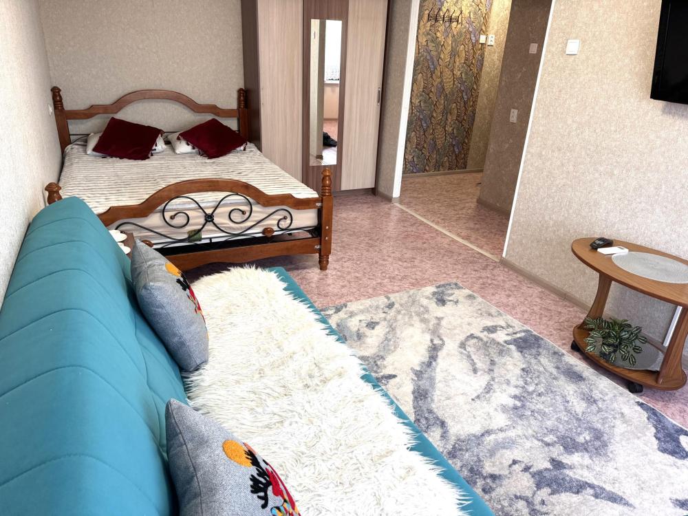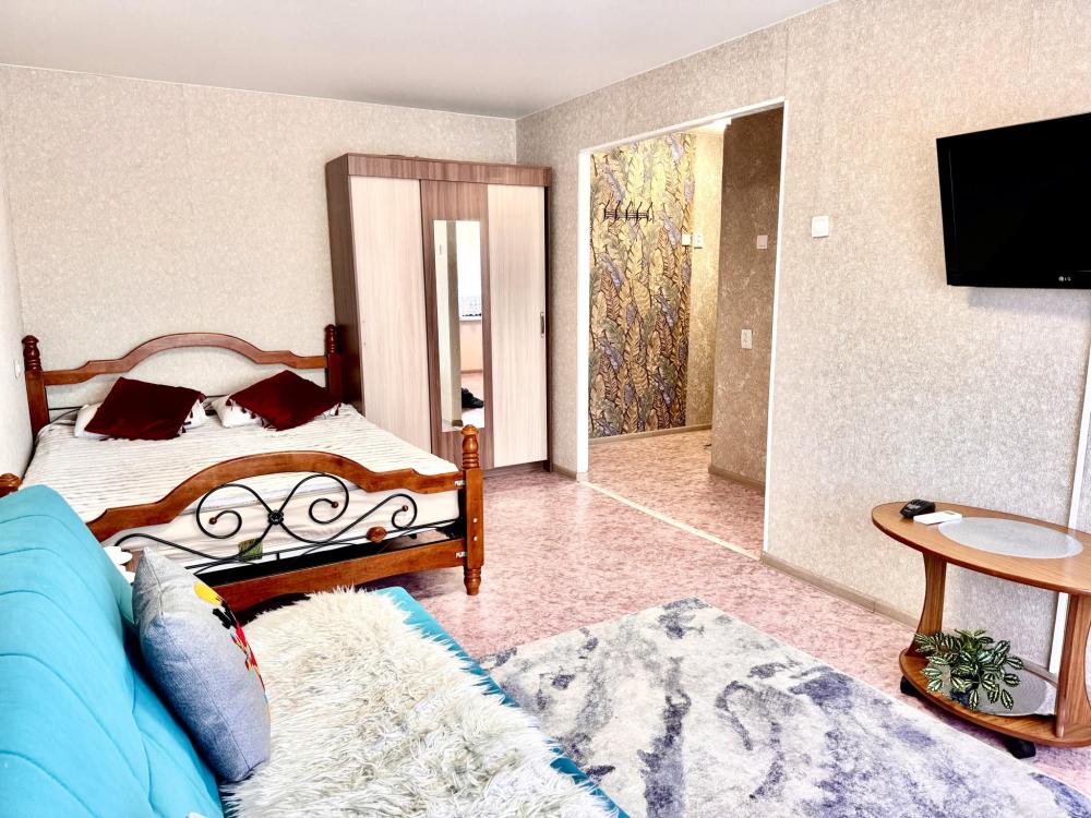 Квартира оборудована всем необходимым для комфортного проживания: двуспальная кровать, диван раздвижной, тахта кондиционер, оборудованная кухонная зона, собственная ванная комната и туалет.