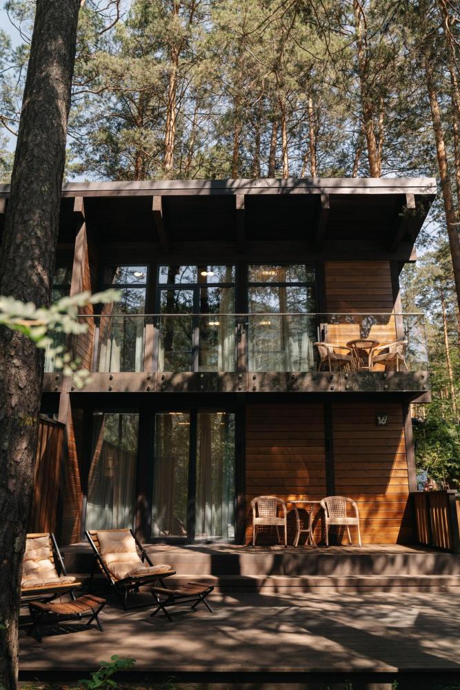 Двухэтажный номер с панорамными окнами, балконом и террасой, на которой размещен чан-купель. В номере 1 этаж: диван, стол, стулья, телевизор 43 дюйма. Кухня꞉ микроволновая печь, минихолодильник, мини‑бар, стиральная машинка, набор столовой посуды, бутилированная вода, чайник электрический, чайный набор. Санузел 1 этаж꞉ туалет; раковина; набор ручных полотенец. Терраса꞉ 2 кресла; столик, чан-купель. 2 этаж: Комната꞉ кровать king-size (1,8*2,0 м), шкаф. Санузел 2 этаж꞉ туалет, раковина, душ, набор полотенец, халат и тапочки, гигиенический набор, фен. Балкон꞉ 2 кресла, столик.