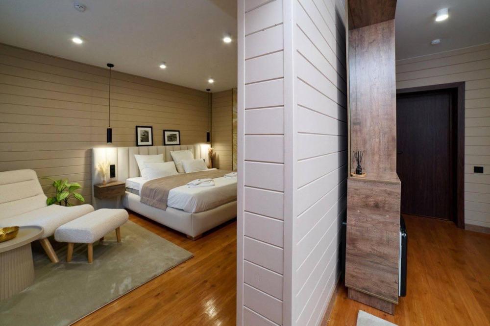 Стандартный номер — это идеальный баланс комфорта и ценности. Просторное и светлое помещение оборудовано всем необходимым для отдыха после насыщенного дня. Здесь имеется все необходимое для комфортного проживания : уютная спальная зона, рабочее место и собственный современный санузел.