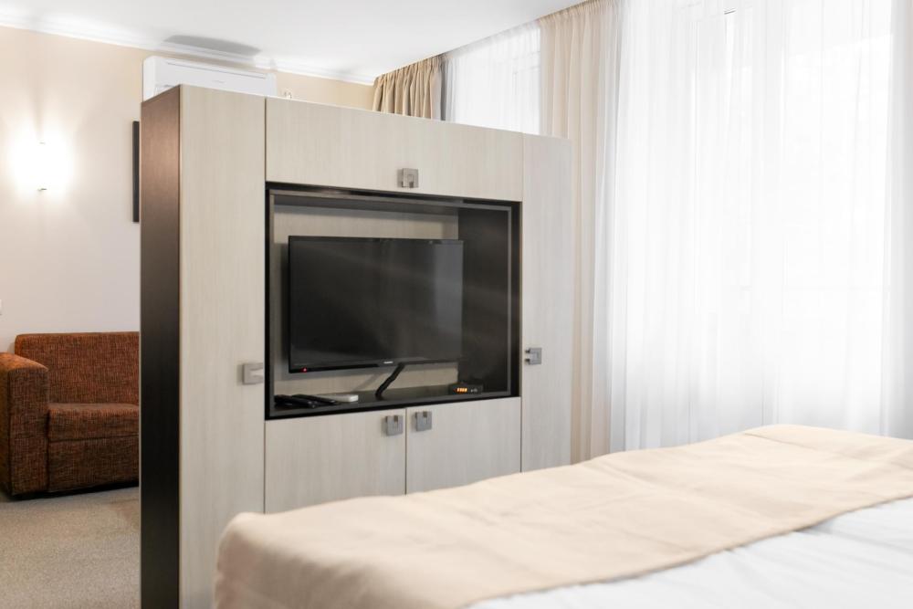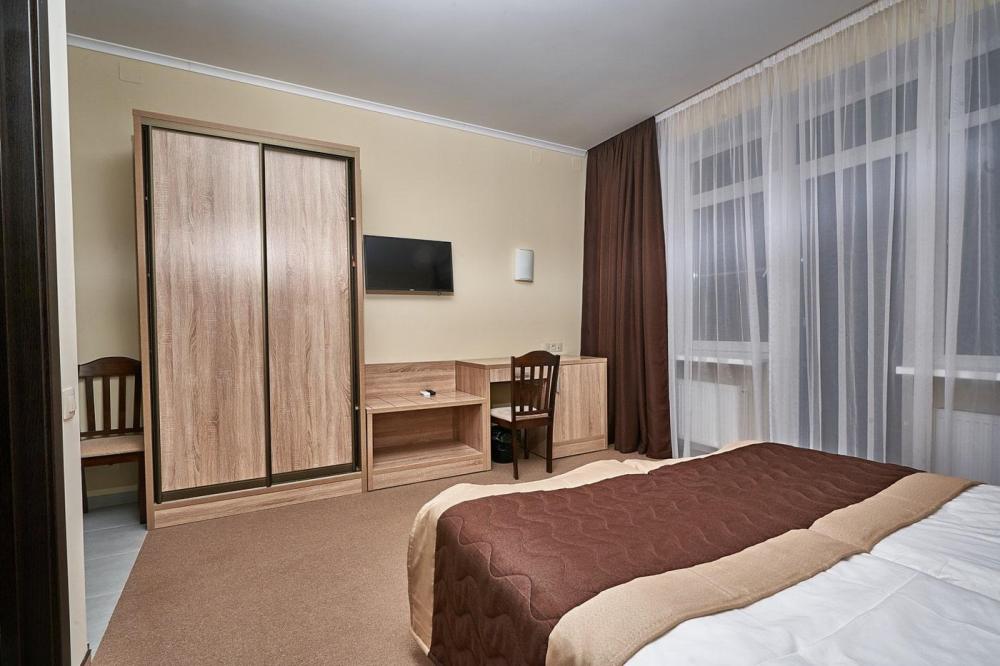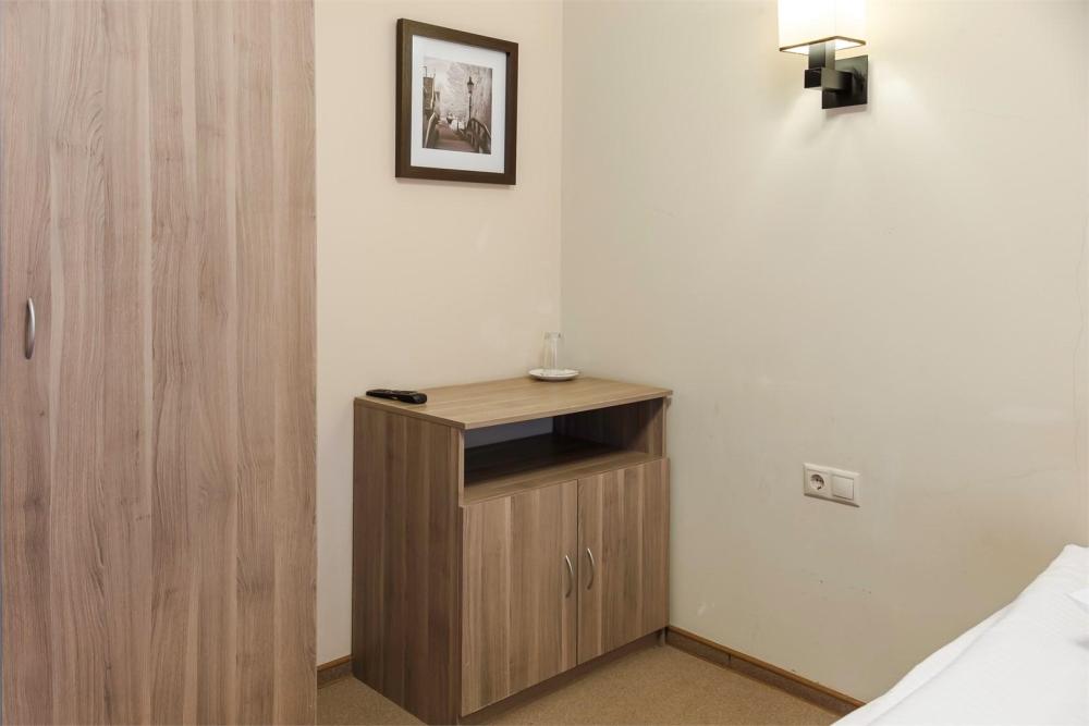 Однокомнатный номер с полутороспальной кроватью, санузлом с душевой кабиной, балконом. Номер оборудован минибаром, сейфом, кабельным ТВ, Wi-Fi. В номере одно основное место и одно дополнительное место (2-й человек на полутороспальной кровати). Площадь номера 15,4 кв.м. Максимально возможное размещение — 2 человека (второй человек без предоставления дополнительного места).