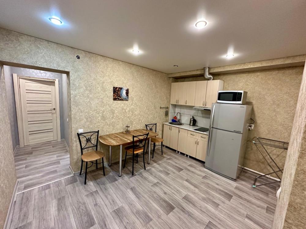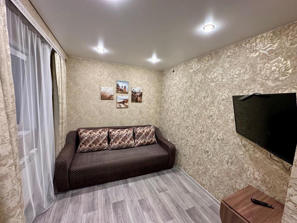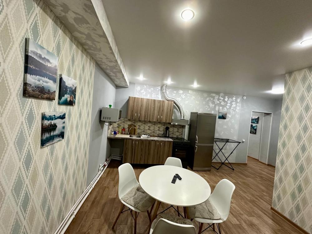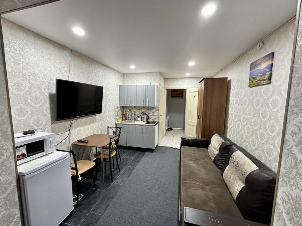Однокомнатные апартаменты, собственной мини-кухней и ванной комнатой. К услугам гостей телевизор, фен, чайник, стиральная машина, Wi-Fi. Постельное белье и посуда предоставляются.
