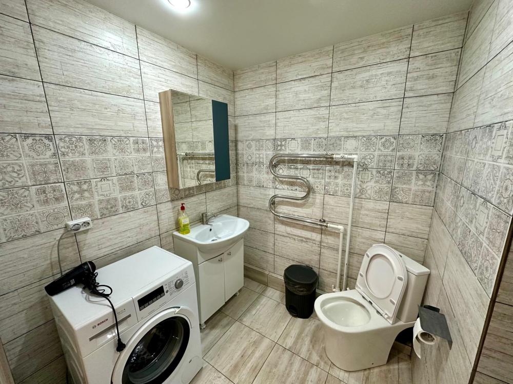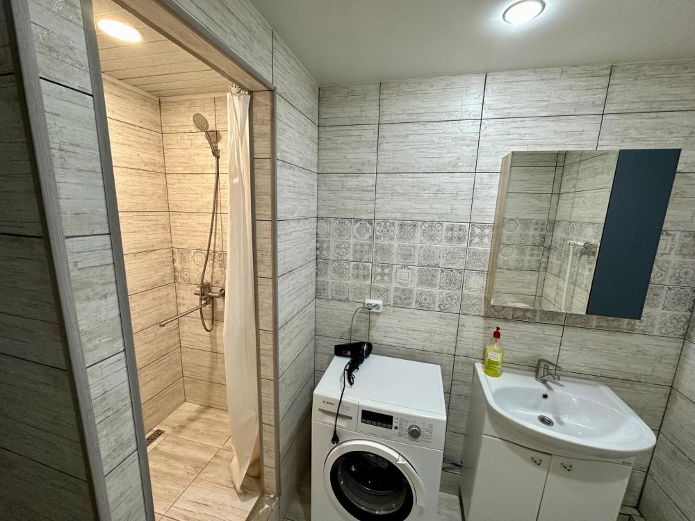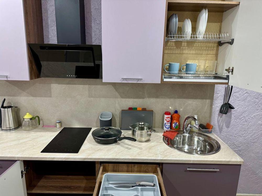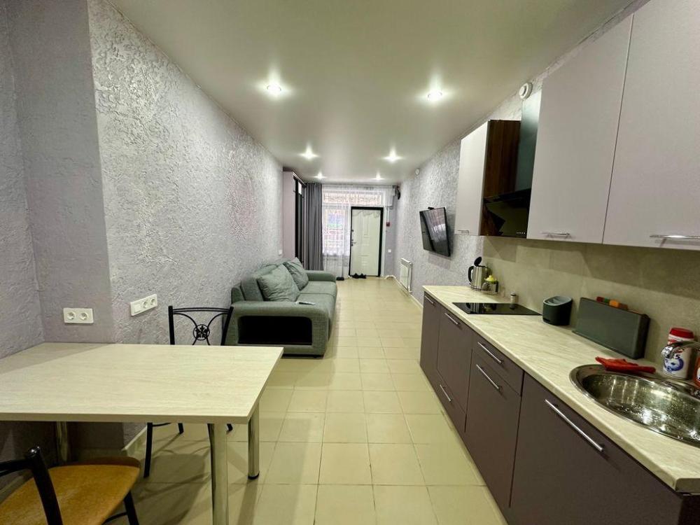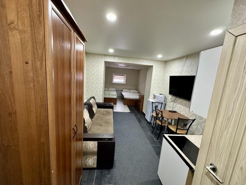 Однокомнатные апартаменты, собственной мини-кухней и ванной комнатой. К услугам гостей телевизор, фен, чайник, стиральная машина, Wi-Fi. Постельное белье и посуда предоставляются.