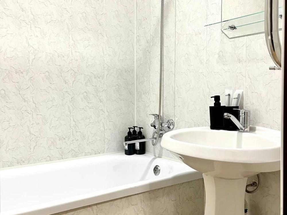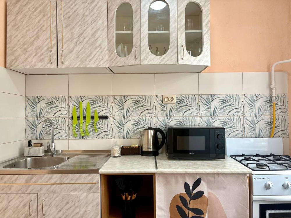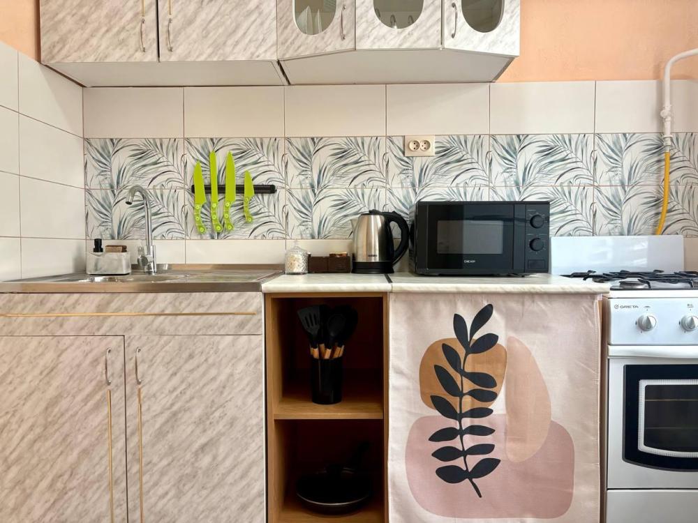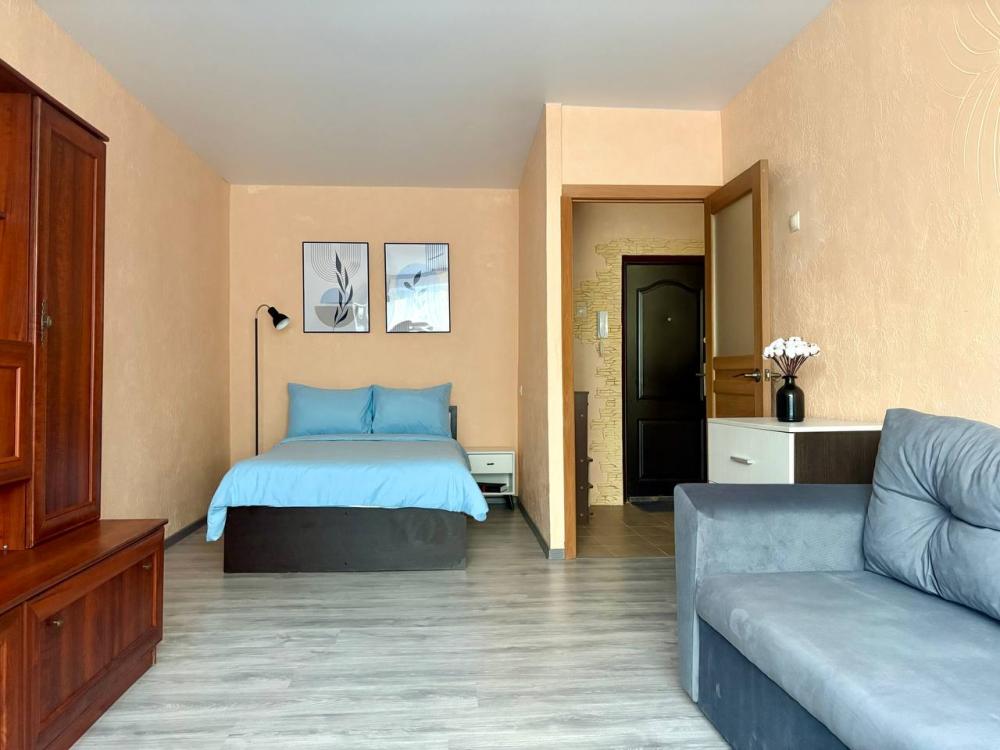 Спальные места: большой раскладной диван для одного-двух человек и кровать 140х200. Чистое постельное белье и комплекты махровых полотенец на каждого человека. Кухня полностью оборудованная посудой и бытовой техникой: столовые приборы, посуда, чай, кофе, сахар, соль. Стиральная машина, фен, утюг, гладильная доска. Гигиенические принадлежности: шампунь, мыло, и другие приятные мелочи. В квартире имеется бесплатный безлимитный Wi-Fi и интернет и телевизор.