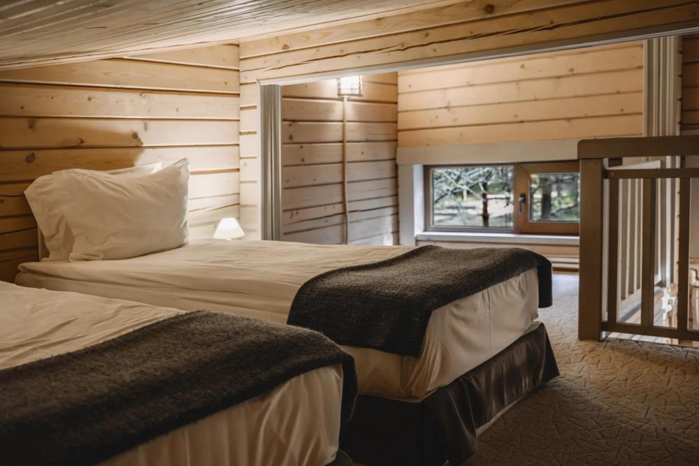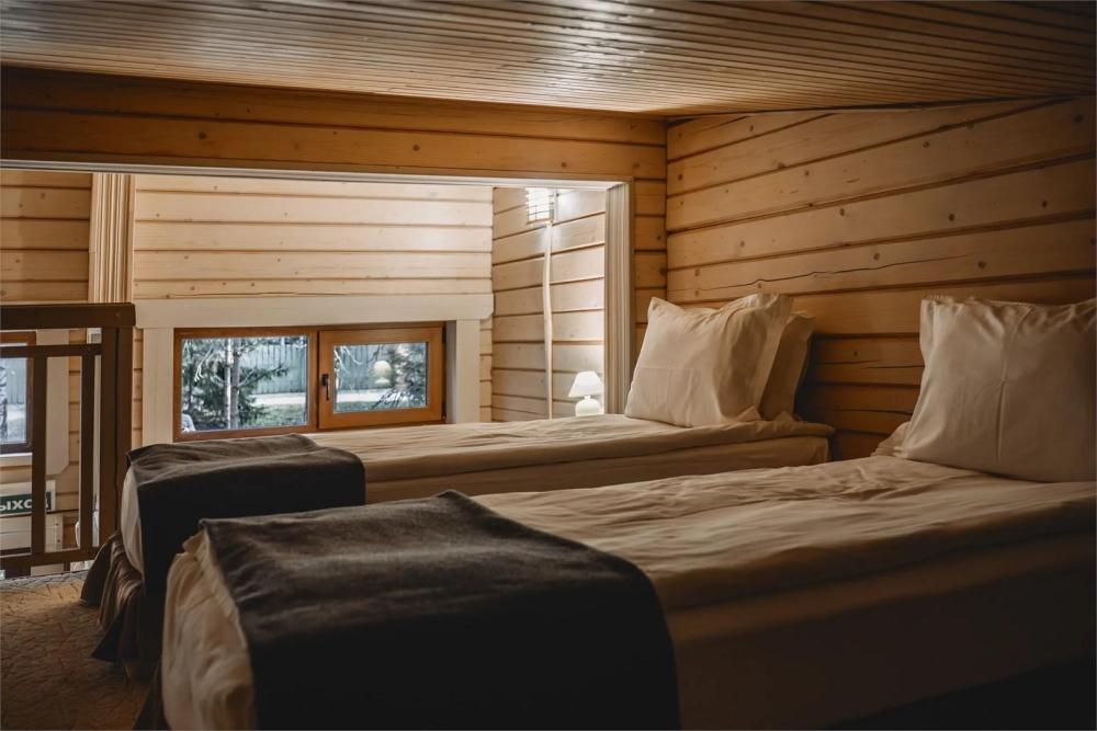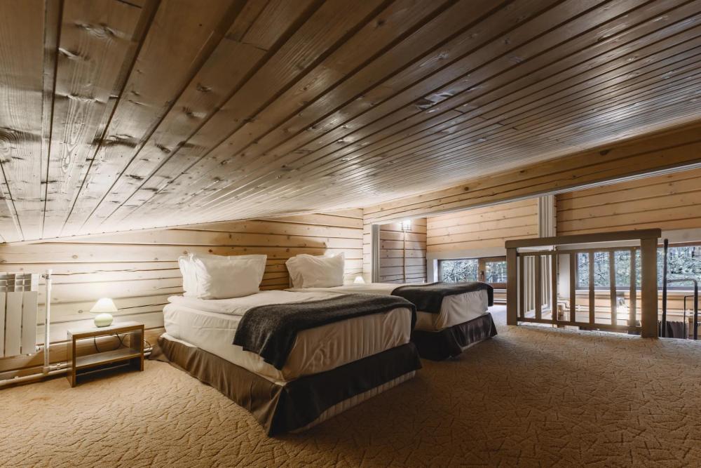 Идеальный выбор для семьи из 4 человек. Двухэтажный номер площадью 47 кв.м. В номере: 1 двуспальная кровать и 2 односпальные кровати, которые можно соединить в двуспальную, телевизор, шкаф/гардероб, мини-холодильник, чайник, чайный набор, ванная комната, туалетно-косметические принадлежности, халаты, тапочки, душ, фен, услуга будильника, собственный санузел.