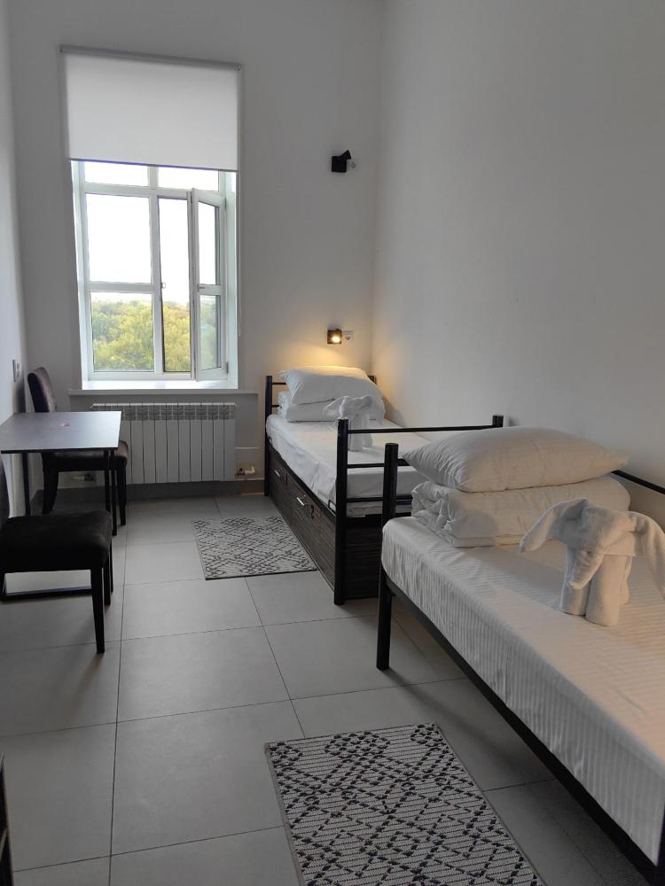 Уютный номер на 2 человек с индивидуальным санузлом и душем в коридоре. В номере односпальные кровати с ортопедическими матрасами, постельные принадлежности, комплект полотенец.. В номере есть письменный стол, вешалка для одежды, бесплатный wi-fi