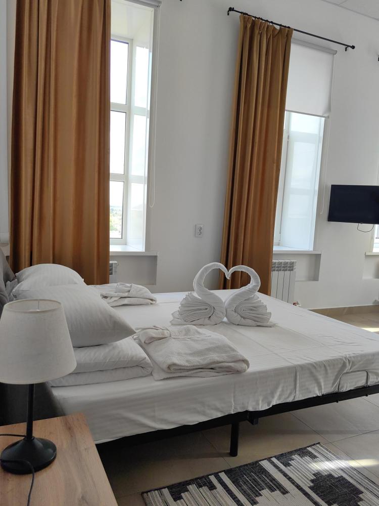 Двухместный номер с одной двуспальной кроватью. В номере имеется душевая, туалет, набор полотенец, халат, фен, кондиционер, телевизор, тумба, вешалка для вещей, стол,бесплатный wi-fi.