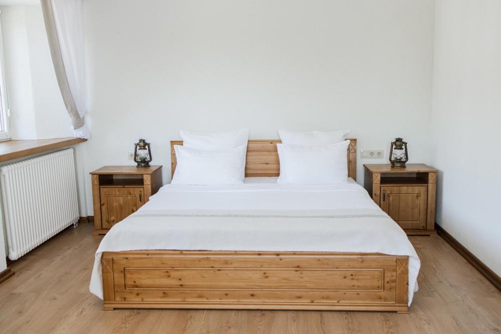Двухкомнатный номер люкс с просторной гостиной и светлой спальней идеально подойдет для длительного отдыха. Большой угловой диван в гостиной раскладывается и может быть использован в качестве спального места для двоих гостей, а круглый стол позволит собраться всей компанией за настольной игрой или чаепитием. Изюминка номера – великолепный балкон (26 кв.м) с резными балясинами с видом на березовую рощу и озеро. На балконе предусмотрены кресла и шезлонги для загара. Для удобства гостей в номерах есть стол, стулья и чайные наборы (чайник, чашки, чай), холодильник, кондиционер, большой телевизор. В номере установлен большой шкаф для одежды. В ванной комнате есть наборы полотенец, шампунь, гель для душа, мыло и фен.
