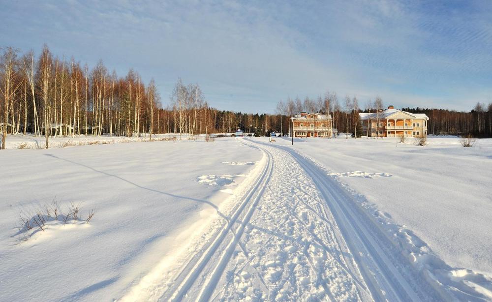 каждого из них открывается живописный и умиротворяющий вид на лесное озеро. Каждый домик рассчитан на проживание четырёх человек. Уют создаётся за счёт интерьера, оформленного в скандинавском стиле: двухъярусная кровать, состоящая из двух полуторных кроватей на первом ярусе, и одной большой двуспальной кровати - на втором; шкаф; терраса. Рядом с каждым домиком есть деревянная обеденная группа. За дополнительную плату предоставляется холодильник . Для отдыхающих на территории есть комфортные тёплые санузлы с душевыми, общая кухня и барбекю-площадка, оборудованная всем необходимым.