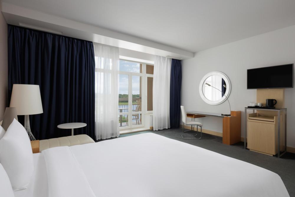 Если вам необходимо дополнительное пространство, рекомендуем один из наших номеров Superior с живописным видом на берег реки. В этом номере есть все, что вам нужно: халат, тапочки, туалетные принадлежности, фен. К услугам гостей принадлежности для чая/кофе и бесплатный Wi-Fi. Номера в этой категории предлагаются с кроватями Twin или King. Номер состоит из 1 комнаты и ванной зоны. Ванная комната оснащена ванной и душем. Цветовая гамма для вас доступна в нежных оттенках стиля Relax или в светлых тонах Natural cool. Номера имеют встроенный сейф, гардеробных шкаф, письменный стол, кресло и журнальный стол. Все номера имеют прекрасный вид на реку, которым вы можете насладиться с индивидуального балкона номера.