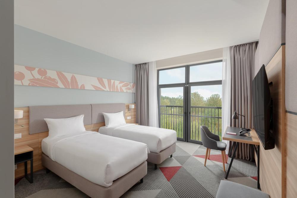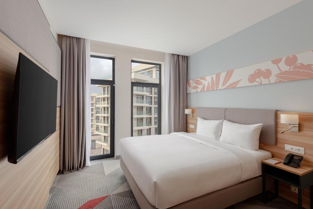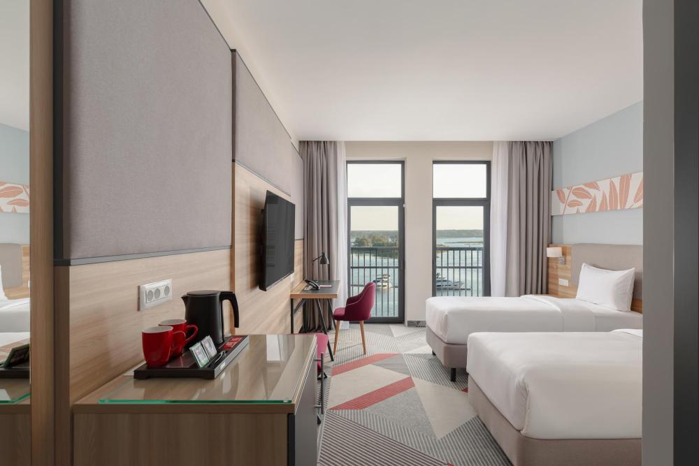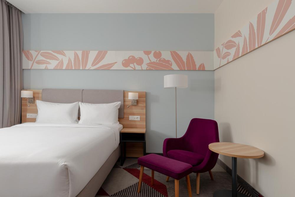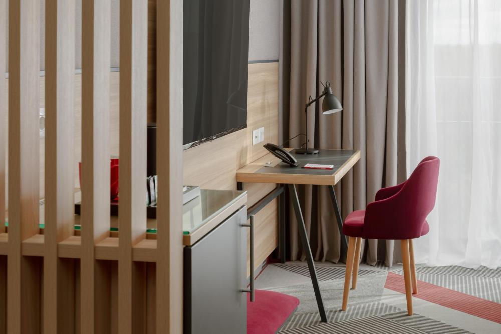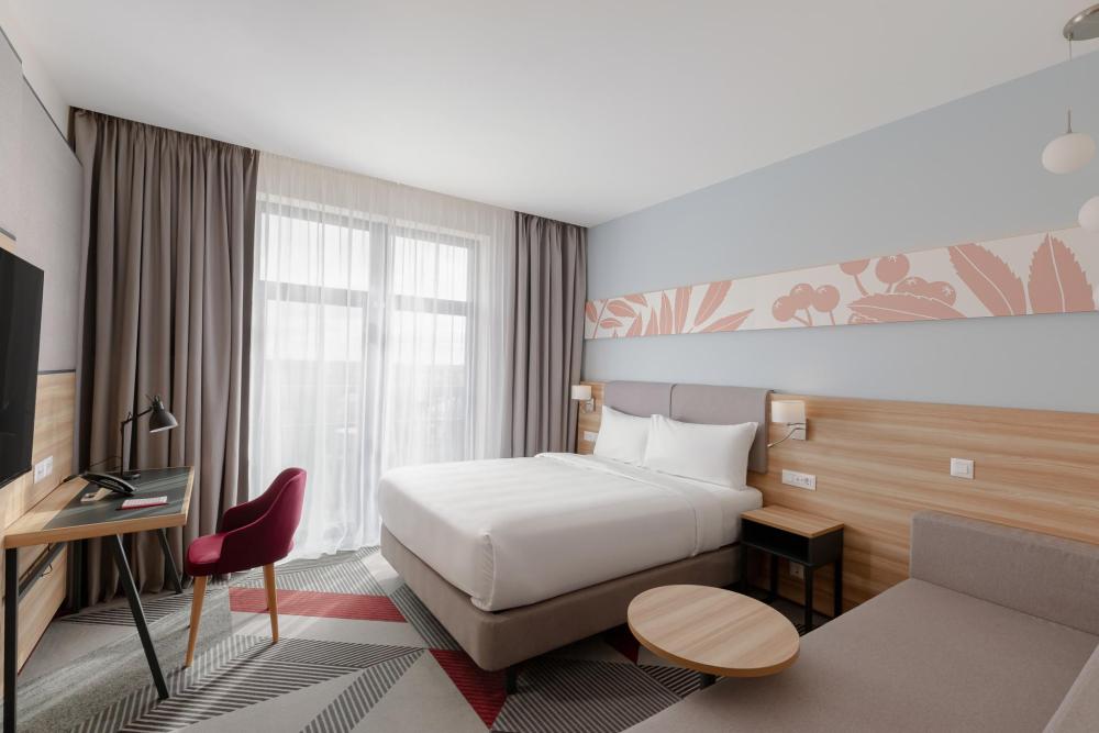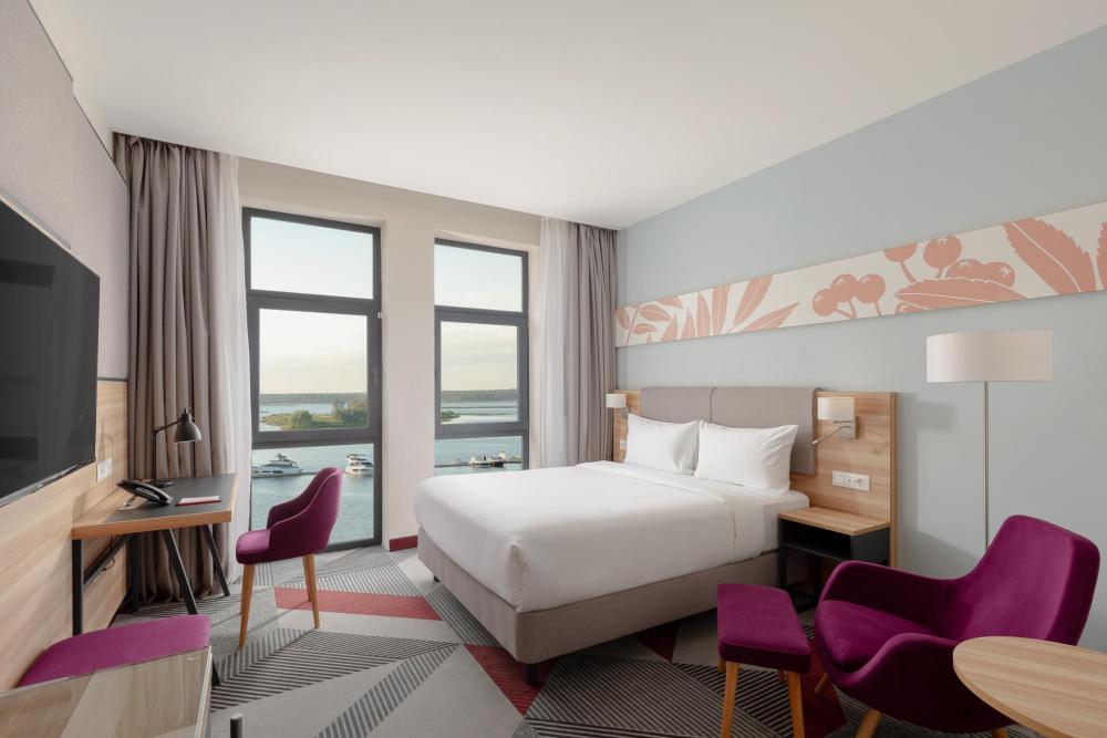 Уютный номер, выполненный в современном стиле с панорамным видом, удобным рабочим местом и двуспальной кроватью. Для комфортного отдыха предусмотрена чайно-кофейная станция.