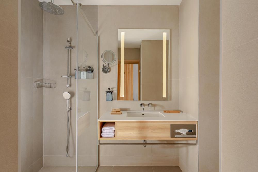 Номер полностью адаптирован для комфортного проживания людей с ограниченными возможностями. Предусмотрены свободные пространства, широкая входная дверь, поручни в ванных комнатах.