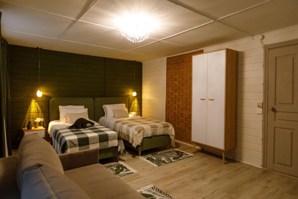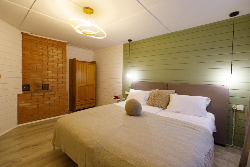 Двухэтажный дом площадью 200 м² с 5 отдельными спальнями, большой гостиной и полностью оборудованной кухней. Идеален для отдыха семьёй или компанией до 12 гостей. Внутри: 5 уютных спален, большая светлая гостиная, полностью оснащённая кухня, 1 санузел, качественная техника и все удобства для комфортного проживания. На территории KELO Village: закрытая зона барбекю с грилем, просторная зона отдыха, ухоженная территория, парковка.