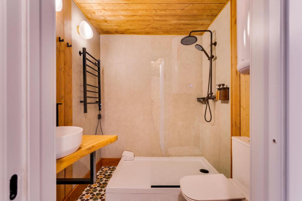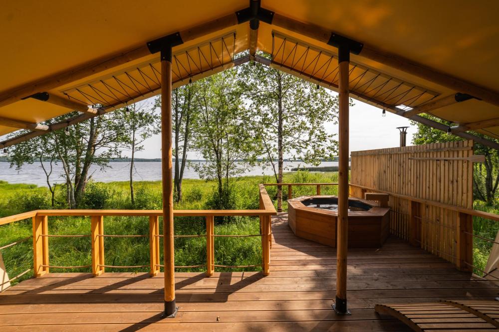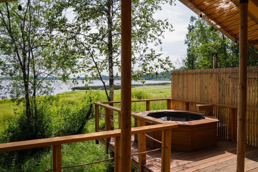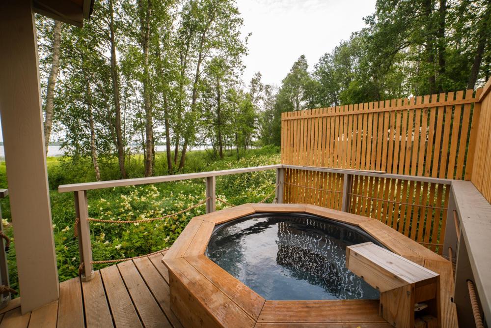 Погрузитесь в гармонию природы в нашем стильном лодже, где каждая деталь создана для вашего комфорта и релакса. Просыпайтесь под шепот волн, любуясь зеркальной гладью озера через панорамные окна, а вечерами наслаждайтесь закатами, окрашивающими небо в теплые оттенки. Ваше личное убежище дополнено деревянной купелью под открытым небом. Пар, танцующий над горячей водой, хрустальный воздух и вид на озеро превратят каждый вечер в спа-ритуал. Зимой это особенно волшебно: контраст морозной свежести и теплой воды под звездным небом. Интерьер лоджа сочетает эко-стиль и современный уют: натуральное дерево, камин с живым огнем, мягкие пледы и продуманное освещение. Идеально для романтического побега или медитативного отдыха в любое время года. Рыбалка, прогулки у воды или просто книги у камина — ваше приключение начинается здесь. Забронируйте отпуск, который останется в памяти, как тихий всплеск весла на рассвете