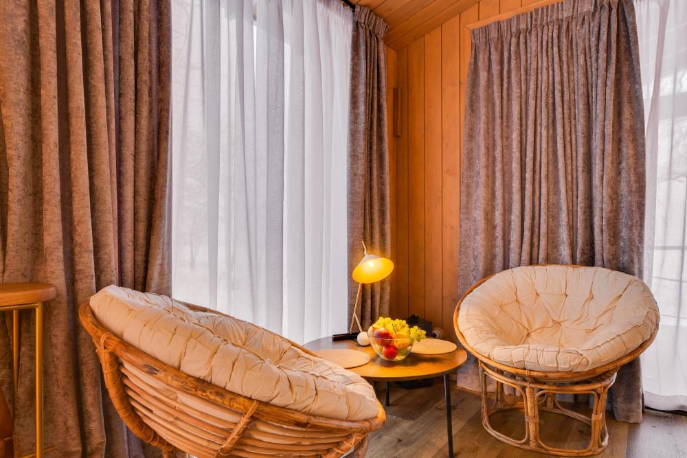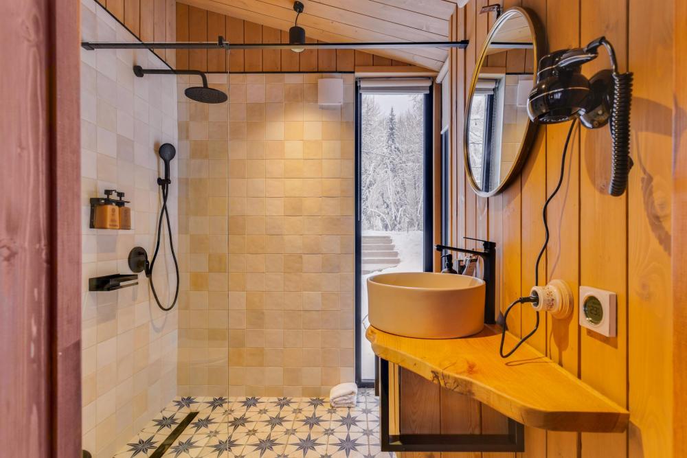 Затерянный в гуще леса, вдали от туристических троп и соседних построек, этот уютный лодж площадью 36 м² — идеальный побег для тех, кто ищет диалог с природой. Здесь — только деревья, шепот ветра в кронах и пение птиц, нарушающее благородную тишину. Ваш личный уголок дикой природы. Просыпайтесь под мягкий свет, пробивающийся сквозь хвойные ветви, вдыхайте смолистый аромат леса и слушайте пение птиц. Интерьер лоджа выполнен из натурального дерева. Шерстяные пледы, камин с треском огня и большие окна, стирающие грань между домом и лесом. Кровать в уютной нише и диван у огня — всё продумано для жизни в гармонии с собой. Это не отдых — перезагрузка. Для влюбленных, философов, уставших горожан и тех, кто верит, что настоящая роскошь не в золоте, а в умении слышать тишину. Оставьте цивилизацию за границей леса. Ваше приключение начинается там, где заканчиваются дороги.