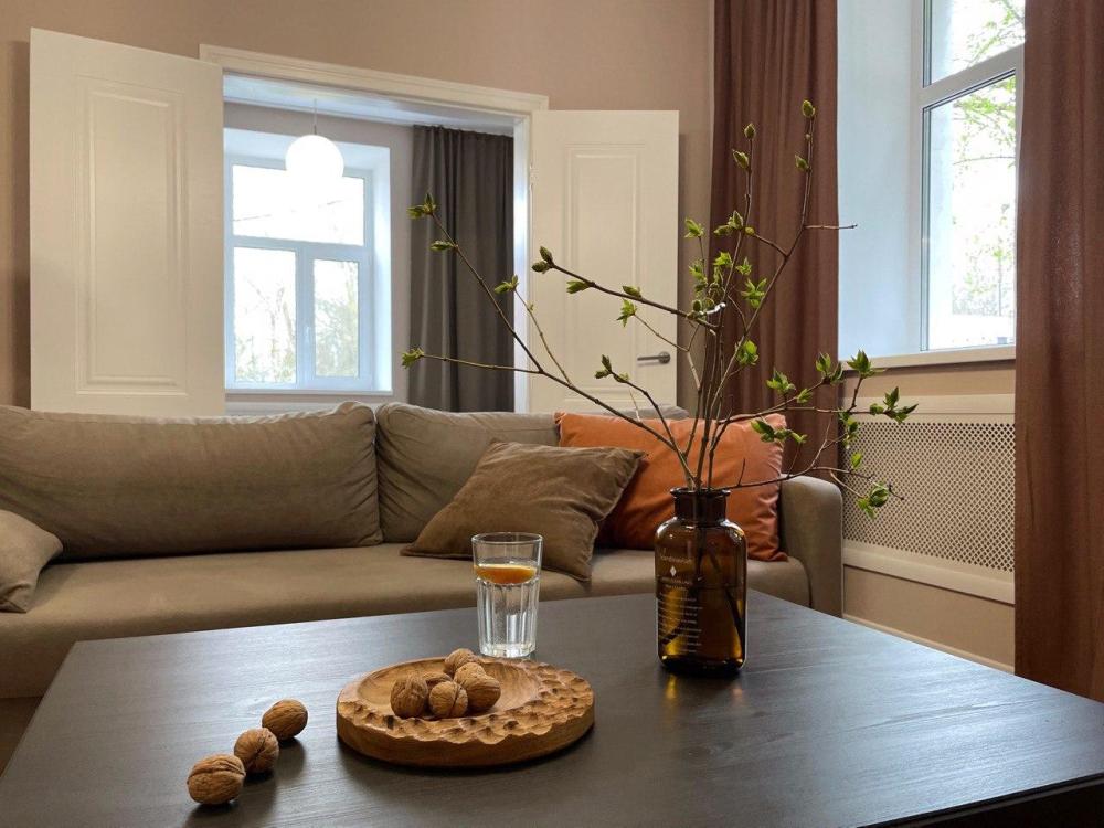 Двухкомнатные апартаменты для 4 гостей. Две комнаты. В спальне полноценная кровать с новым ортопедическим матрасом средней жёсткости, размером 160х200 см. В гостиной очень хороший раскладывающийся диван-книжка (спальное место 140х200 см). Белое постельное бельё, мягкие полотенца. Оборудование квартиры включает качественные средства гигиены (гель для душа, шампунь, мыло, зубные наборы), высокоскоростной Wi-Fi, телевизор с ТВ-каналами и онлайн-кинотеатром, москитные сетки на всех окнах и фумигаторы, Яндекс Станцию с Алисой, книги о Новгороде, шторы «blackout» на всех окнах для комфортного сна, стиральную машину, электрический тёплый пол в санузле, вместительный холодильник, микроволновую печь, утюг с гладильной доской и сушилкой для одежды, фен для волос, фильтр-кувшин для воды, чайник, турку, разнообразные сорта чая и молотого кофе, а также большое количество посуды, столовых приборов, бокалов и стаканов разных видов.