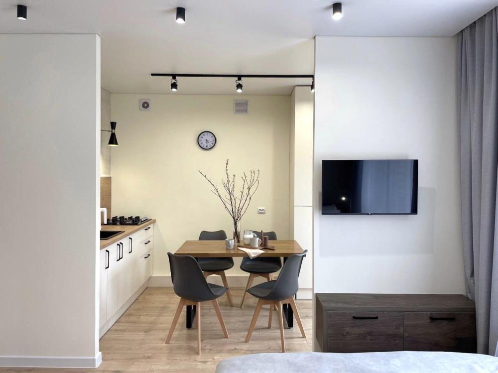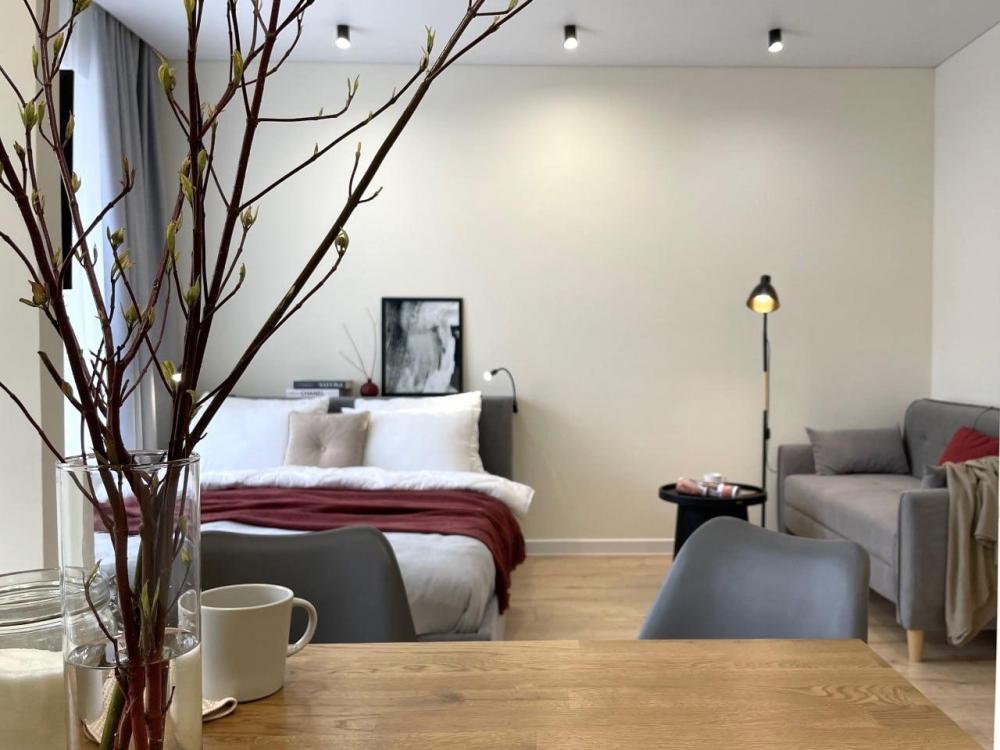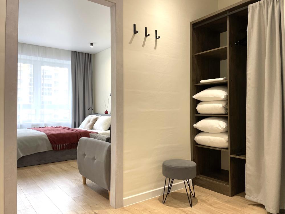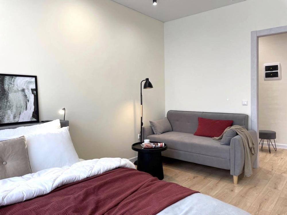 Современная квартира с размещением до 4 гостей. Полноценная кровать с новым ортопедическим матрасом средней жёсткости, размером 160х200 см, раскладывающийся диван (спальное место 140х200 см). Белое постельное бельё, мягкие полотенца. Стираем и гладим бельё только в профессиональной прачечной. Оборудование квартиры включает качественные средства гигиены (гель для душа, шампунь, мыло), высокоскоростной Wi-Fi, телевизор с ТВ-каналами и онлайн-кинотеатром, стиральную машину, вместительный холодильник, фильтр-кувшин для воды, микроволновую печь, утюг, гладильную доску, сушилку для одежды, настольные игры и журналы, шторы «blackout» для комфортного сна, москитные сетки, фен для волос, чайник и турка, разнообразный чай и качественный молотый кофе, а также мощный напольный вентилятор.