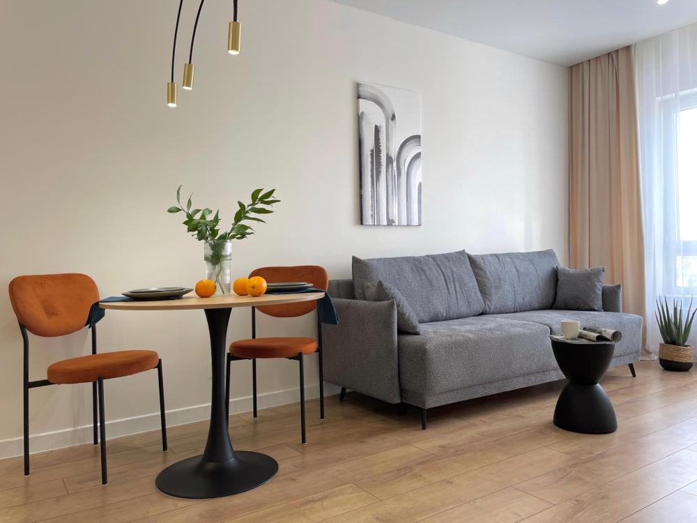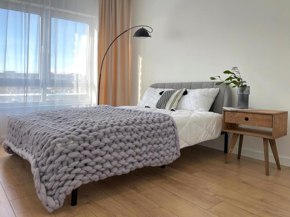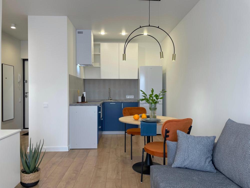 Современная евродвухкомнатная квартира для размещение до 4 гостей. Квартира состоит из кухни-гостиной и изолированной спальни. В спальне полноценная кровать с ортопедическим матрасом средней жёсткости, размером 160х200 см. В гостиной раскладывающийся диван (спальное место 140х200 см). Белое постельное бельё, мягкие полотенца. В квартире есть качественные средства гигиены (гель для душа, шампунь, мыло), высокоскоростной Wi-Fi, телевизор с ТВ-каналами и онлайн-кинотеатром, москитные сетки на все окна, настольные игры и журналы, рулонные шторы «blackout» для комфортного сна, стиральная машина, вместительный холодильник, микроволновая печь, утюг с гладильной доской и сушилкой, фен для волос, фильтр-кувшин для воды, чайник, турка, разнообразный чай и качественный молотый кофе для комфортного проживания.