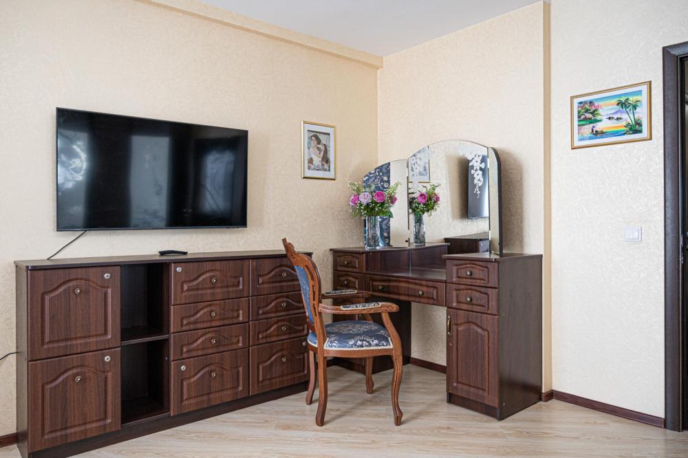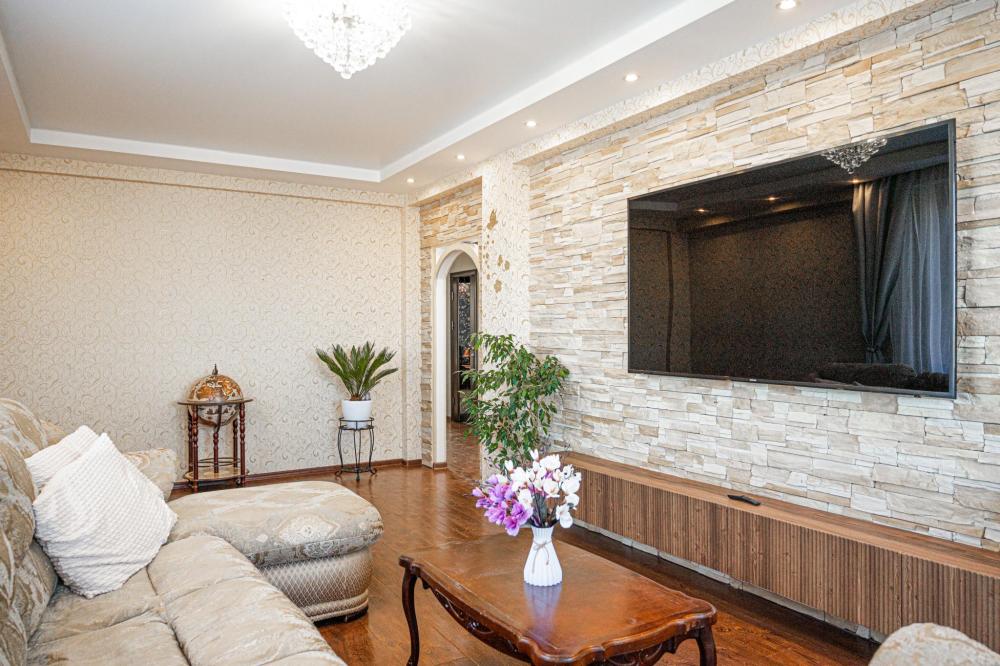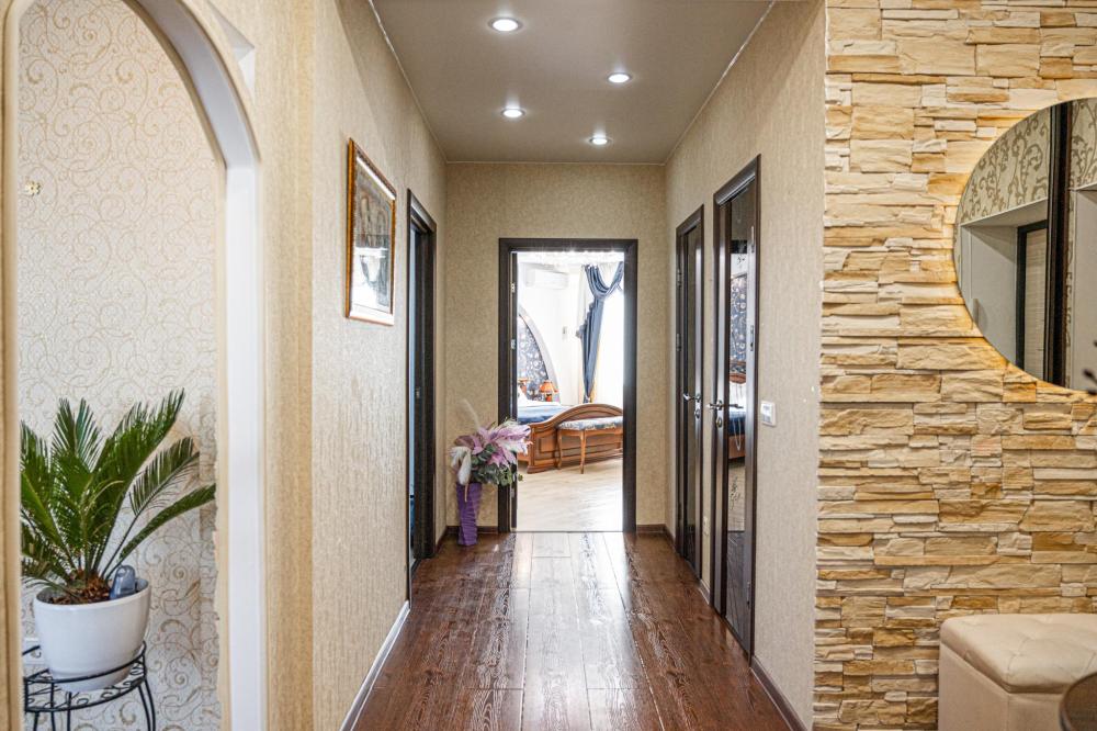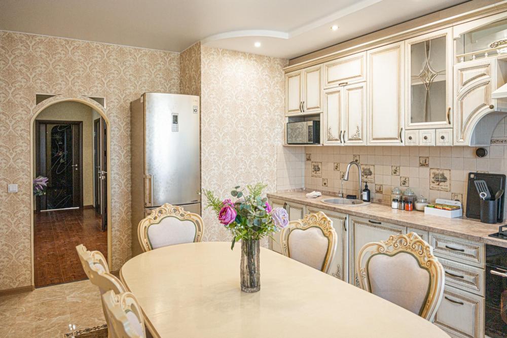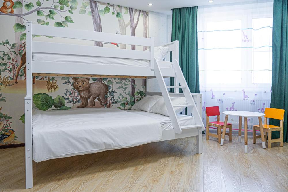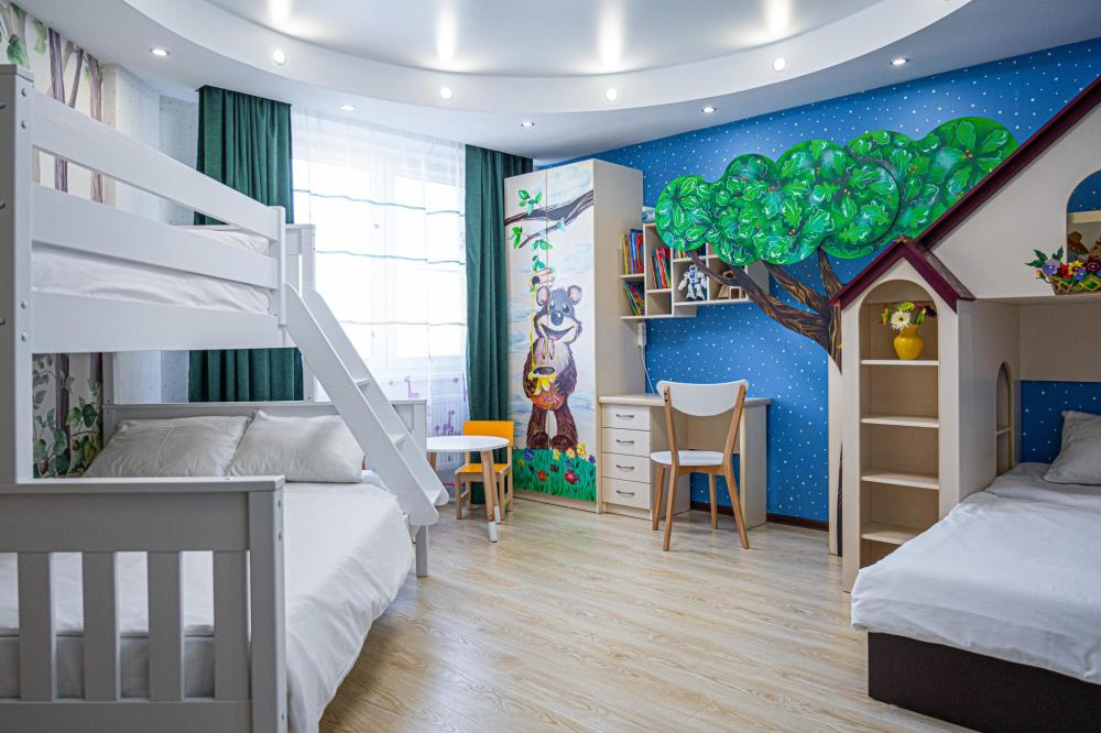Просторная 110-метровая 3-х комнатная видовая квартира на 10 этаже. Все комнаты изолированные. Раздельный санузел. Спальные места: в спальне кровать с очень большим матрасом для 2-х гостей, в гостиной большой раскладывающийся диван для 2-х гостей, в средней (детской) комнате двухъярусная кровать (матрас 140х200 для 2-х гостей и 90х200 для 1 гостя) и детская кровать с матрасом 80х180 для 1 гостя. Белое постельное бельё, мягкие полотенца. Оборудование квартиры включает качественные средства гигиены (гель для душа, шампунь, мыло, зубные наборы), хорошую систему фильтрации питьевой воды, два телевизора с ТВ каналами и онлайн-кинотеатром, игровую консоль «Sony PlayStation 4 Pro» с играми, Яндекс Станцию с Алисой, настольные игры, книги, журналы, карандаши и раскраски для детей, шторы «blackout» на всех окнах для комфортного сна, надёжные ограничители на оконных створках для безопасности детей, стиральную машину, вместительный холодильник, микроволновую печь, посудомоечную машину, утюг, гладильную доску, сушилку для одежды, фен для волос, чайник, турку, множество сортов чая и качественного кофе (молотого и в зёрнах), большое количество посуды, столовых приборов, бокалов и стаканов, а также москитные сетки на всех окнах.