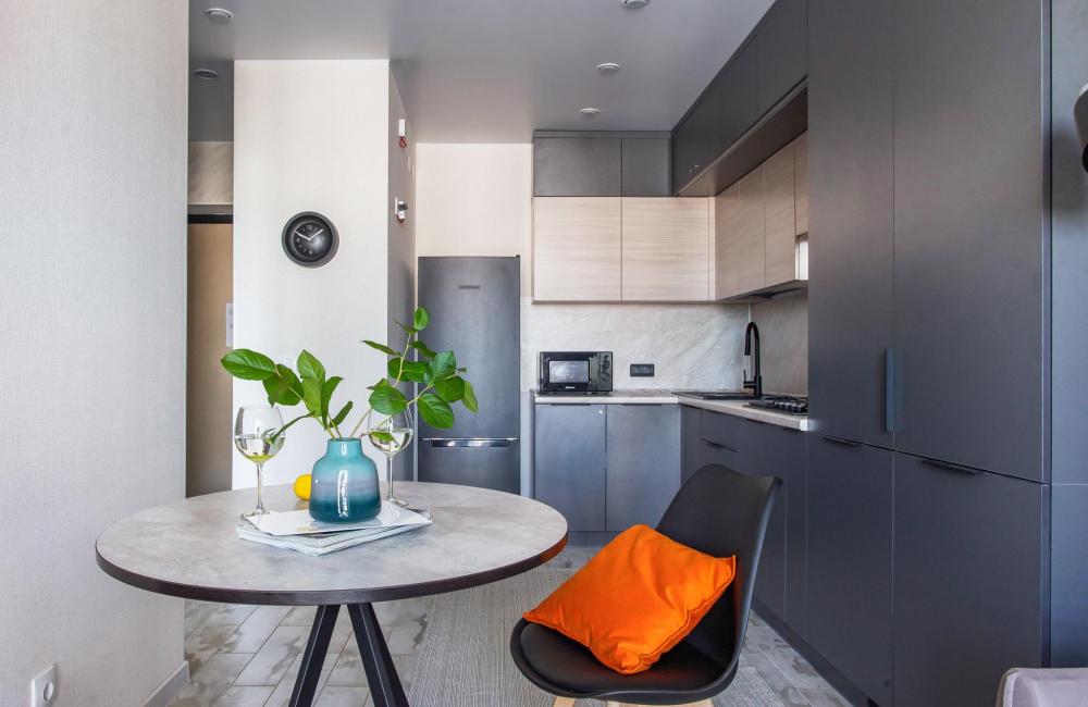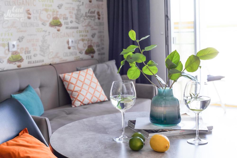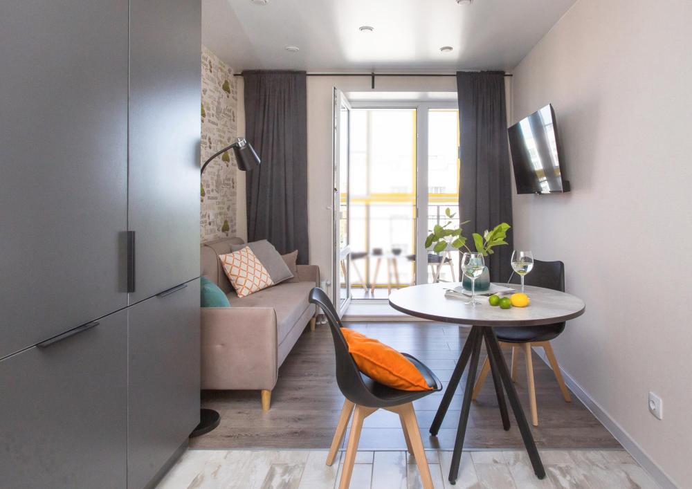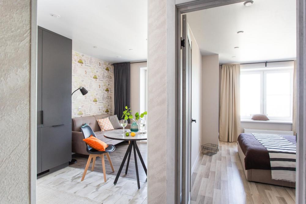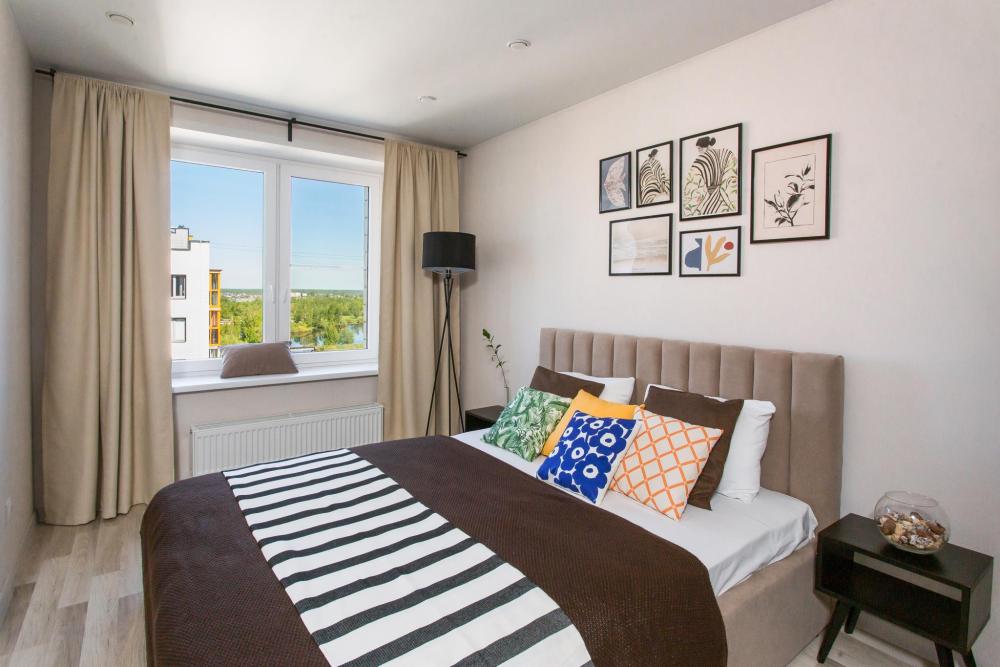 Современные евродвухкомнатные апартаменты с видом на реку и лес, для 4 гостей. В спальне полноценная кровать с новым ортопедическим матрасом средней жёсткости, размером 160х200 см. В гостиной раскладывающийся диван (спальное место 140х200 см). Белое постельное бельё, мягкие полотенца. Оборудование квартиры включает качественные средства гигиены (гель для душа, шампунь, мыло), Wi-Fi, телевизор с ТВ-каналами и онлайн-кинотеатром, Яндекс Станцию с Алисой, мощный напольный вентилятор, москитные сетки на всех окнах, настольные игры и журналы, шторы «blackout» для комфортного сна, стиральную машину, вместительный холодильник, микроволновую печь, утюг, гладильную доску, сушилку для одежды, фен для волос, фильтр-кувшин для воды, чайник, турку, разнообразный чай и качественный молотый кофе.