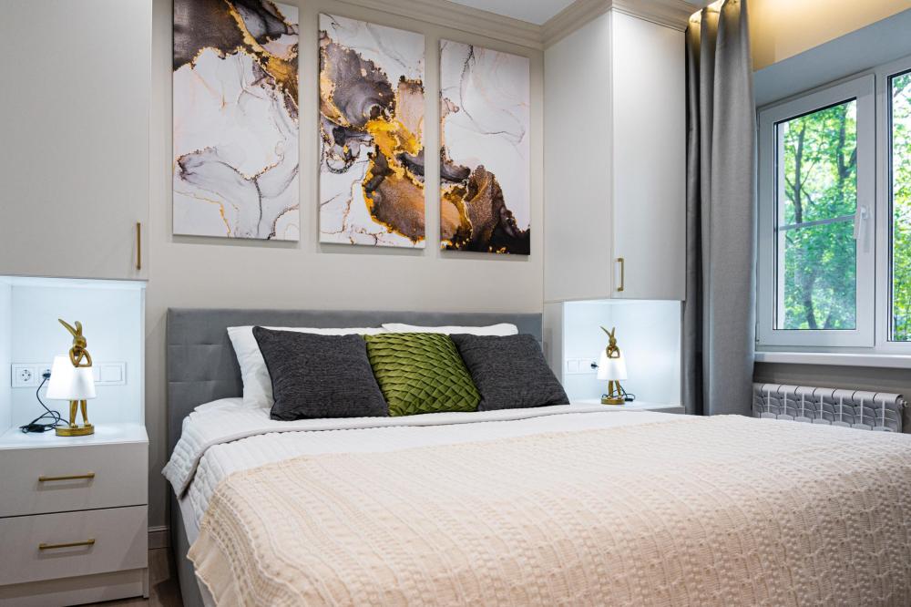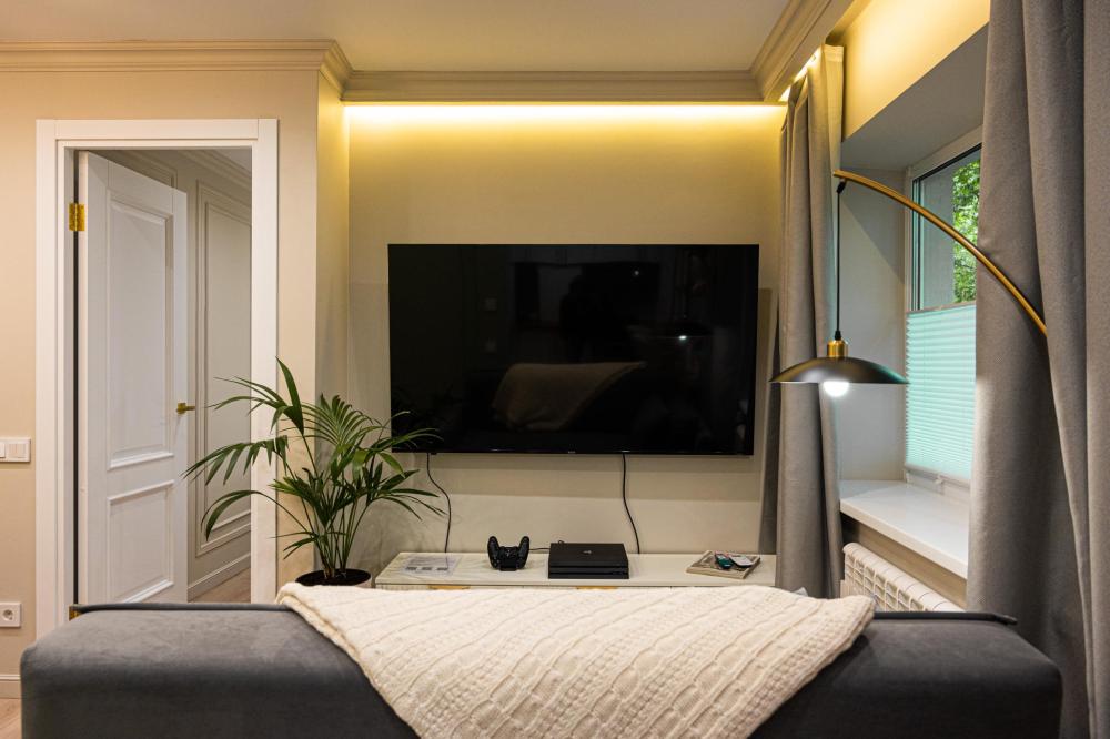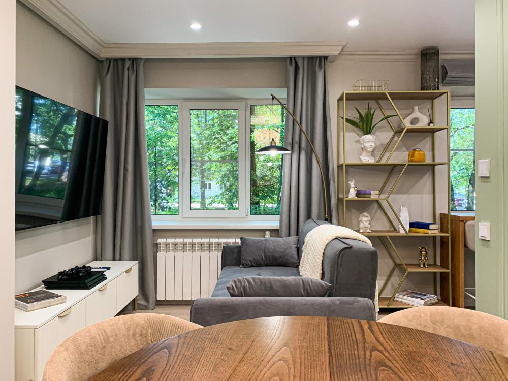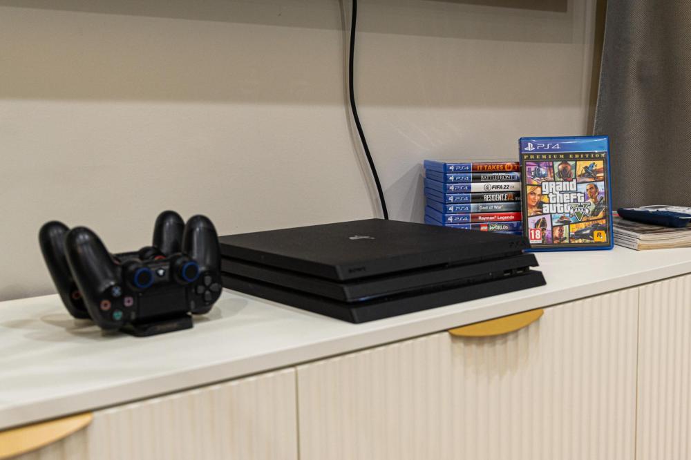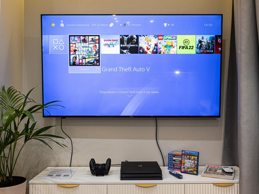 Неоклассический интерьер, торжество спокойствия и тишины, размеренной жизни и семейного уюта в нескольких шагах от эпицентра культурной жизни Великого Новгорода. Совмещённая кухня-гостиная и две изолированные спальни. Полноценные кровати с новыми ортопедическими матрасами средней жёсткости, размером 160х190 см. Диван в гостиной раскладывается (спальное место 140х200 см). Белое постельное бельё, мягкие полотенца. Оборудование квартиры включает качественные средства гигиены (гель для душа, шампунь, мыло, зубные наборы), высокоскоростной Wi-Fi, три телевизора с ТВ-каналами и онлайн-кинотеатром, кондиционер (сплит-система), москитные сетки на всех окнах, игровую консоль «Sony PlayStation 4 Pro» с играми на любой вкус, Яндекс Станцию с Алисой, настольные игры, книги, журналы, карандаши и раскраски для детей, жалюзи плиссе на створках окон с возможностью закрытия снизу вверх для ограничения просматриваемости с улицы при сохранении естественного освещения, шторы «blackout» на всех окнах для комфортного сна, стиральную машину, электрические теплые полы, вместительный холодильник, микроволновую печь, духовой шкаф, посудомоечную машину, утюг с гладильной доской и сушилкой для одежды, фен для волос, хорошую систему фильтрации питьевой воды, чайник и турку, разнообразный чай и качественный молотый кофе, а также большое количество посуды, столовых приборов, бокалов и стаканов разных видов.