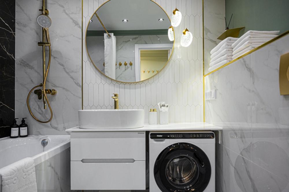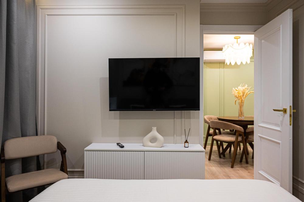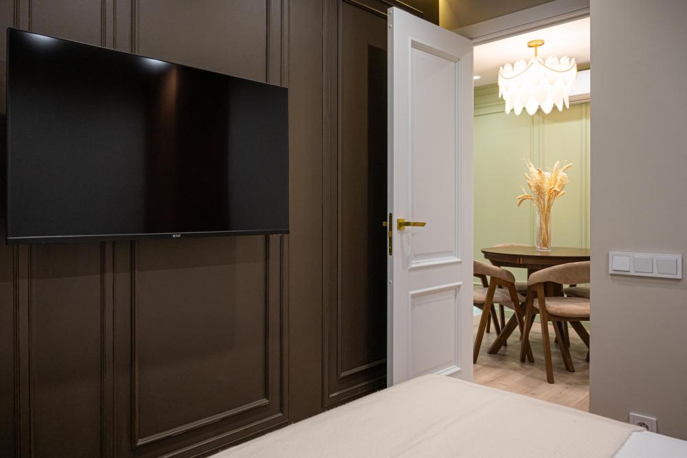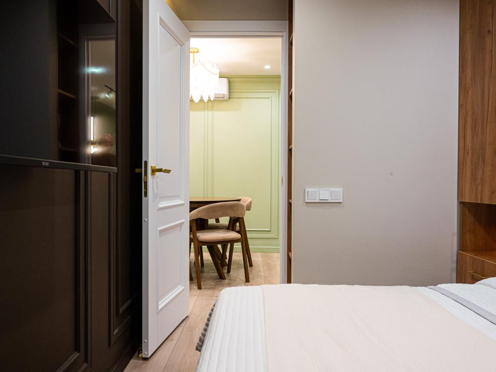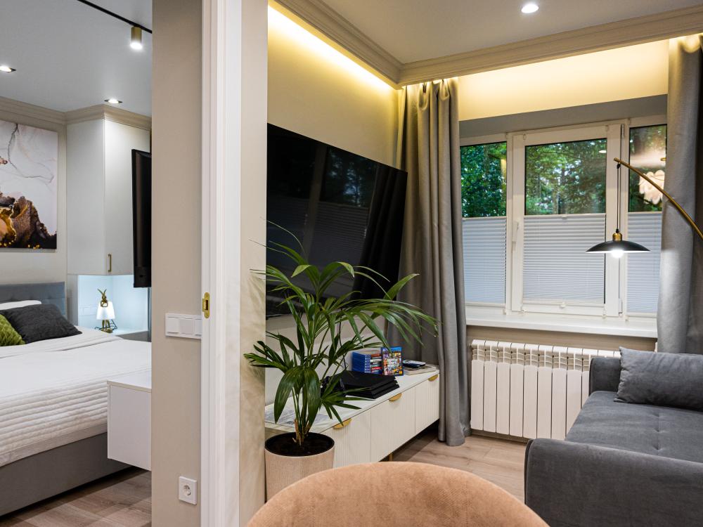 Неоклассический интерьер, торжество спокойствия и тишины, размеренной жизни и семейного уюта в нескольких шагах от эпицентра культурной жизни Великого Новгорода. Совмещённая кухня-гостиная и две изолированные спальни. Полноценные кровати с новыми ортопедическими матрасами средней жёсткости, размером 160х190 см. Диван в гостиной раскладывается (спальное место 140х200 см). Белое постельное бельё, мягкие полотенца. Оборудование квартиры включает качественные средства гигиены (гель для душа, шампунь, мыло, зубные наборы), высокоскоростной Wi-Fi, три телевизора с ТВ-каналами и онлайн-кинотеатром, кондиционер (сплит-система), москитные сетки на всех окнах, игровую консоль «Sony PlayStation 4 Pro» с играми на любой вкус, Яндекс Станцию с Алисой, настольные игры, книги, журналы, карандаши и раскраски для детей, жалюзи плиссе на створках окон с возможностью закрытия снизу вверх для ограничения просматриваемости с улицы при сохранении естественного освещения, шторы «blackout» на всех окнах для комфортного сна, стиральную машину, электрические теплые полы, вместительный холодильник, микроволновую печь, духовой шкаф, посудомоечную машину, утюг с гладильной доской и сушилкой для одежды, фен для волос, хорошую систему фильтрации питьевой воды, чайник и турку, разнообразный чай и качественный молотый кофе, а также большое количество посуды, столовых приборов, бокалов и стаканов разных видов.