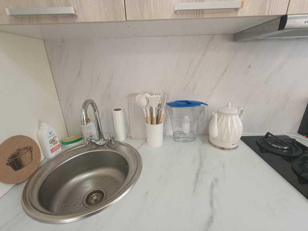 Интерьер выполнен в современном стиле с элементами скандинавского дизайна, создавая атмосферу уюта и спокойствия. В комнате установлена двухспальная кровать размером 160х200 см с ортопедическим матрасом, которая обеспечивает здоровый и крепкий сон. Для гостей, предпочитающих более расслабленный отдых, предусмотрен удобный диван, который может трансформироваться в дополнительное двухспальное место. Кухня полностью оборудована всем необходимым для приготовления пищи. Здесь вы найдете современную плиту, холодильник, микроволновую печь, чайник и всю необходимую посуду. В ванной комнате установлена большая ванна, стиральная машина и фен, что позволяет чувствовать себя как дома даже в длительном путешествии. Апартаменты оснащены бесплатным Wi-Fi, что обеспечивает стабильный доступ к интернету в любое время. Для любителей телевидения доступен кабельный.