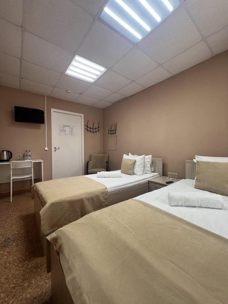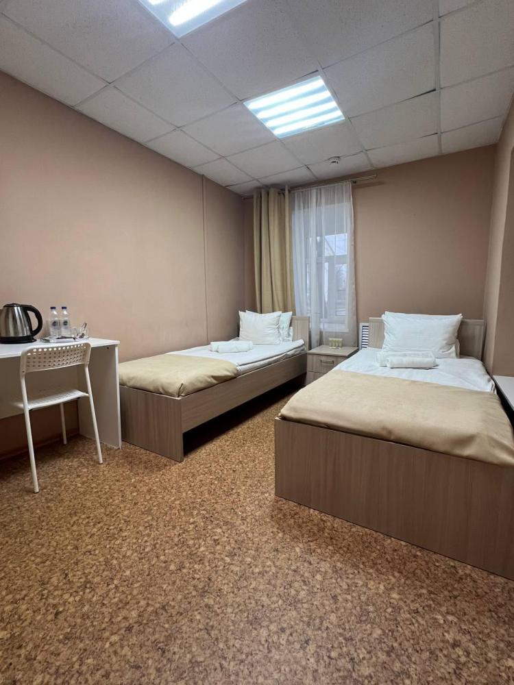 Предлагаем разместиться в двухместном номере. В номере имеется: - телевизор; -шкаф; - письменный стол; - чайник; В стоимость проживания входит: - бутилированная вода; - гели для душа и шампуни; - чай, кофе; - одноразовые тапочки;