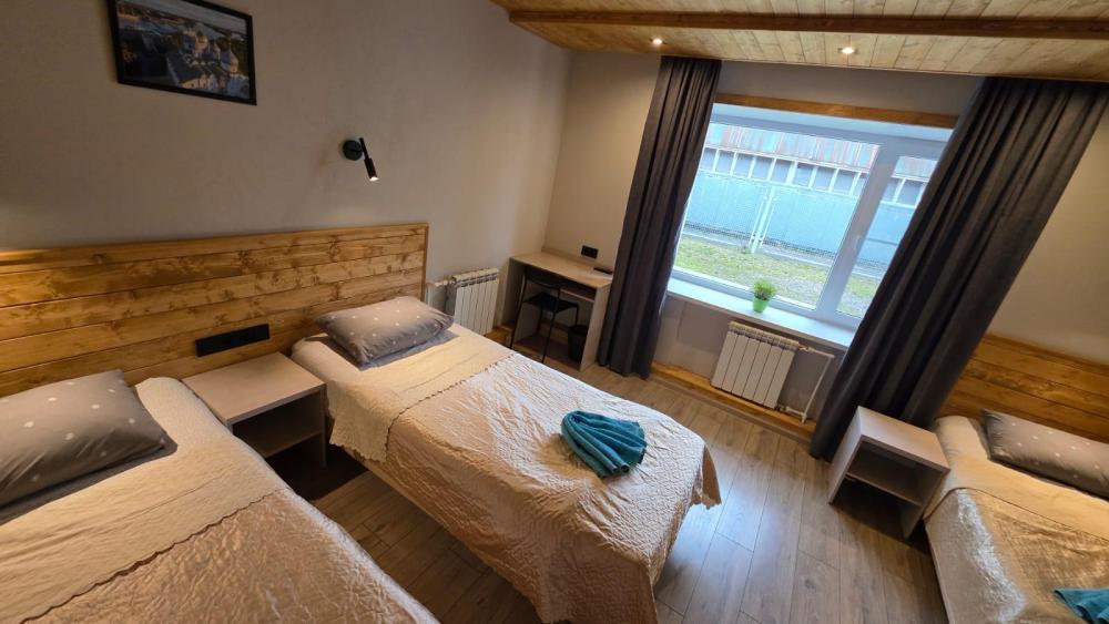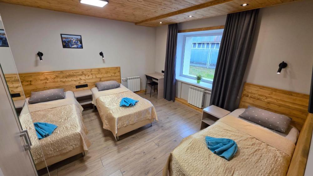 Трехместный номер с 3 односпальными кроватями рассчитан на 3 гостей. К вашим услугам отопление и телевизор, а также общая ванная комната.