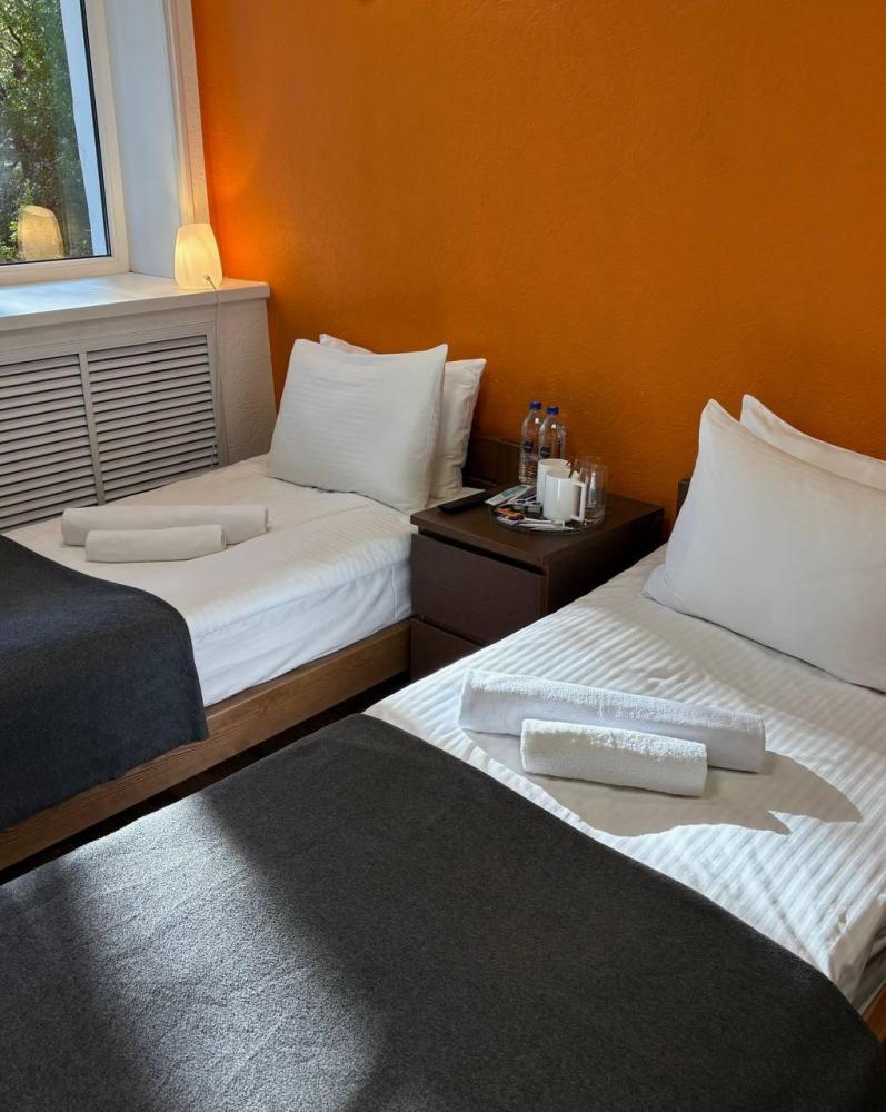 Отдельный номер – площадь 11 м2, с одной двуспальной или двумя односпальными кроватями, шкафом-гардеробом, двумя тумбочками, общей ванной комнатой и отдельным входом.