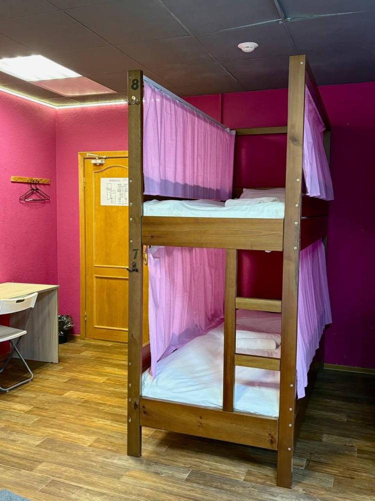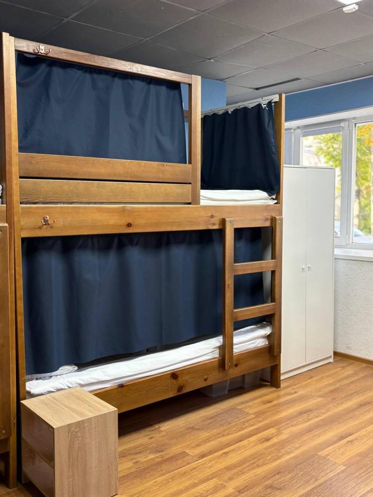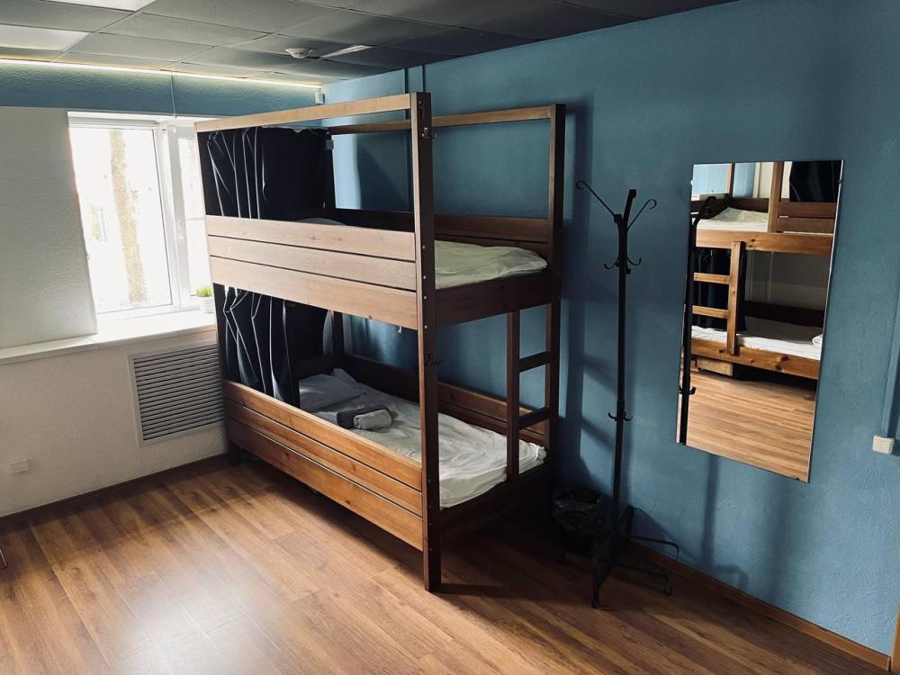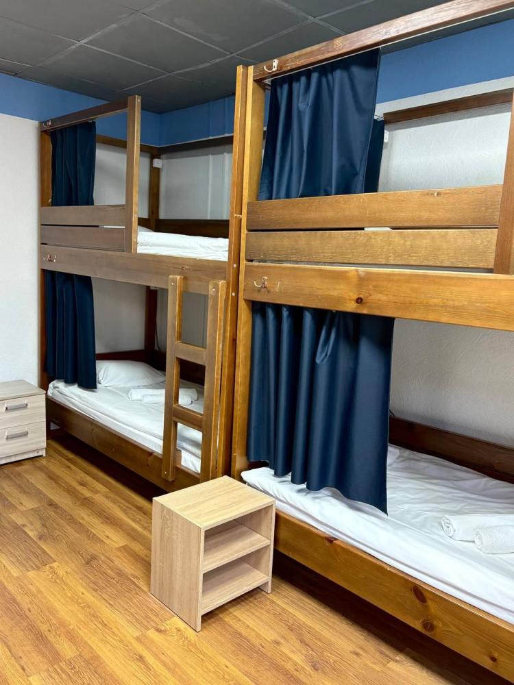 Общий номер для мужчин и женщин – площадь 18 м2, на 6 мест, с двухъярусными кроватями, общим туалетом и ванной комнатой и телевизором.