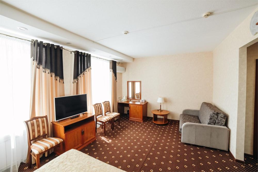 Однокомнатный номер. В номере: две раздельные кровати, пространство для отдыха и работы, холодильник, телевизор, туалетная комната с ванной. Очень уютный и светлый номер с современной, удобной мебелью идеально подходит как для плодотворной работы, так и для полноценного отдыха.