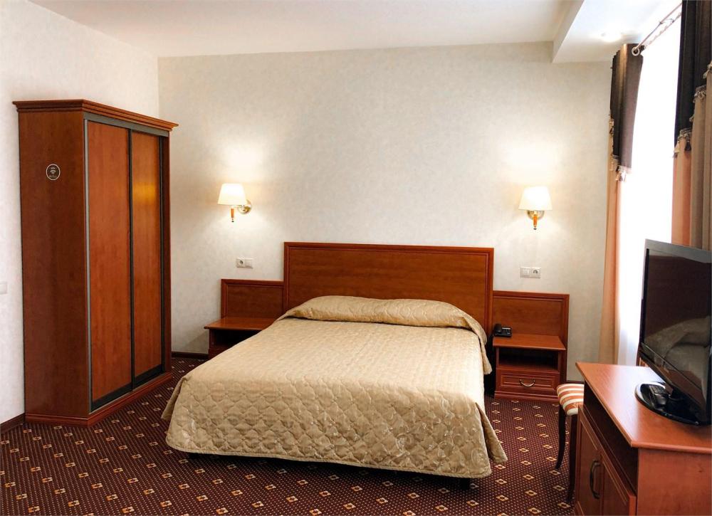 Уютный однокомнатный номер с широкой кроватью. Очень светлый и уютный номер с современной, удобной мебелью идеально подходит как для плодотворной работы, так и для полноценного отдыха.