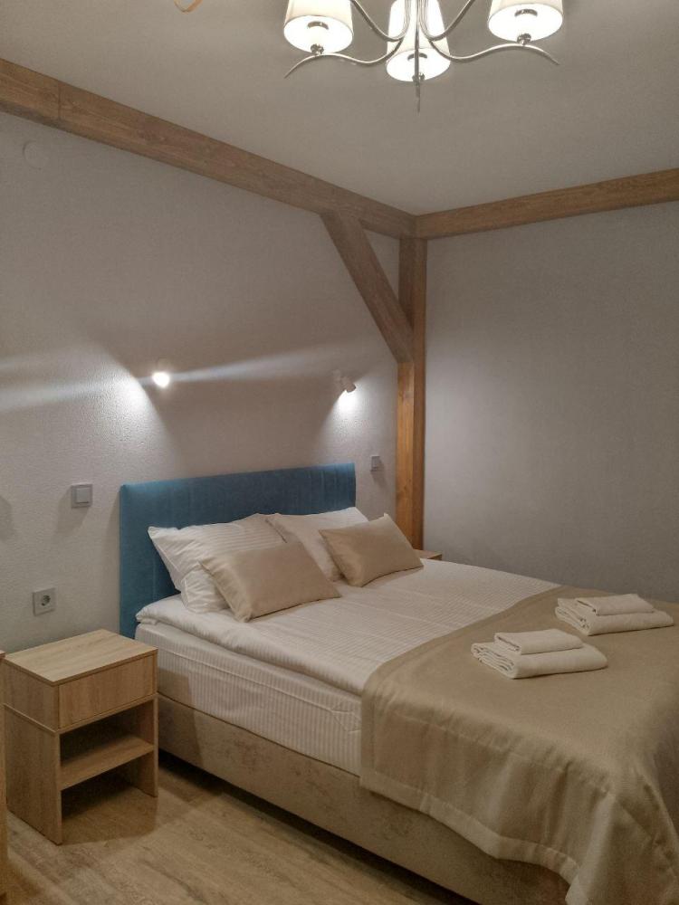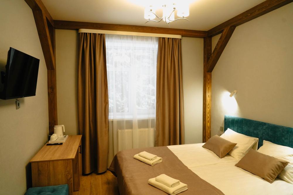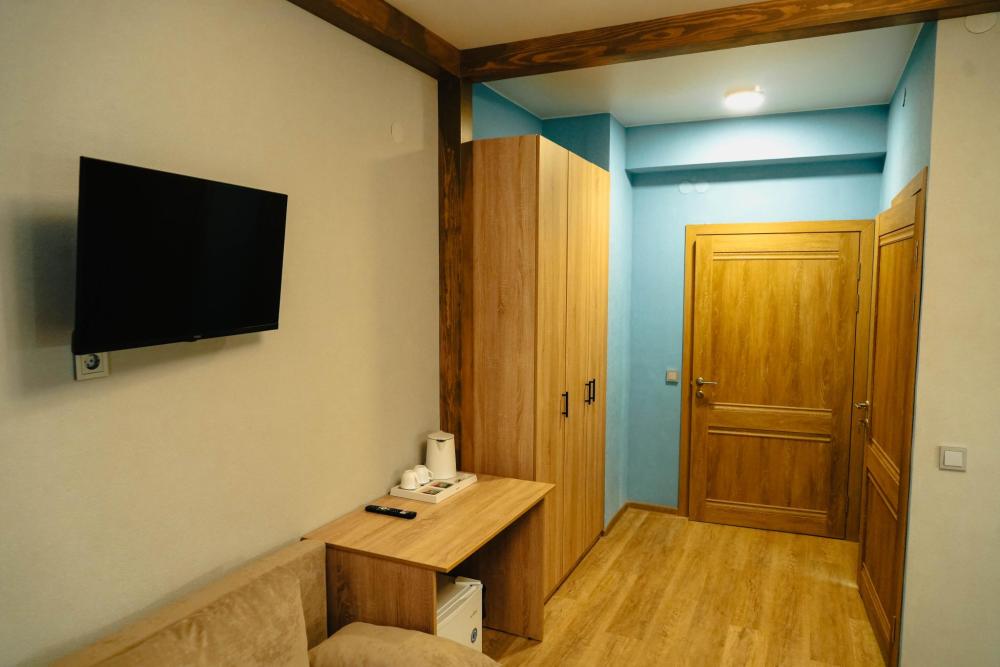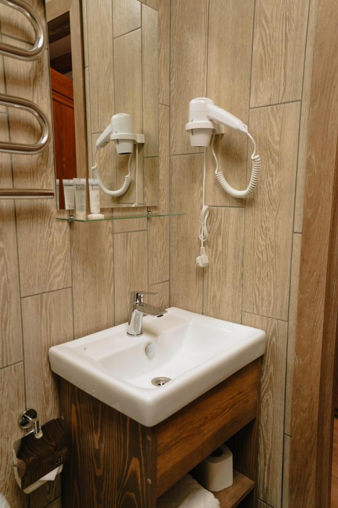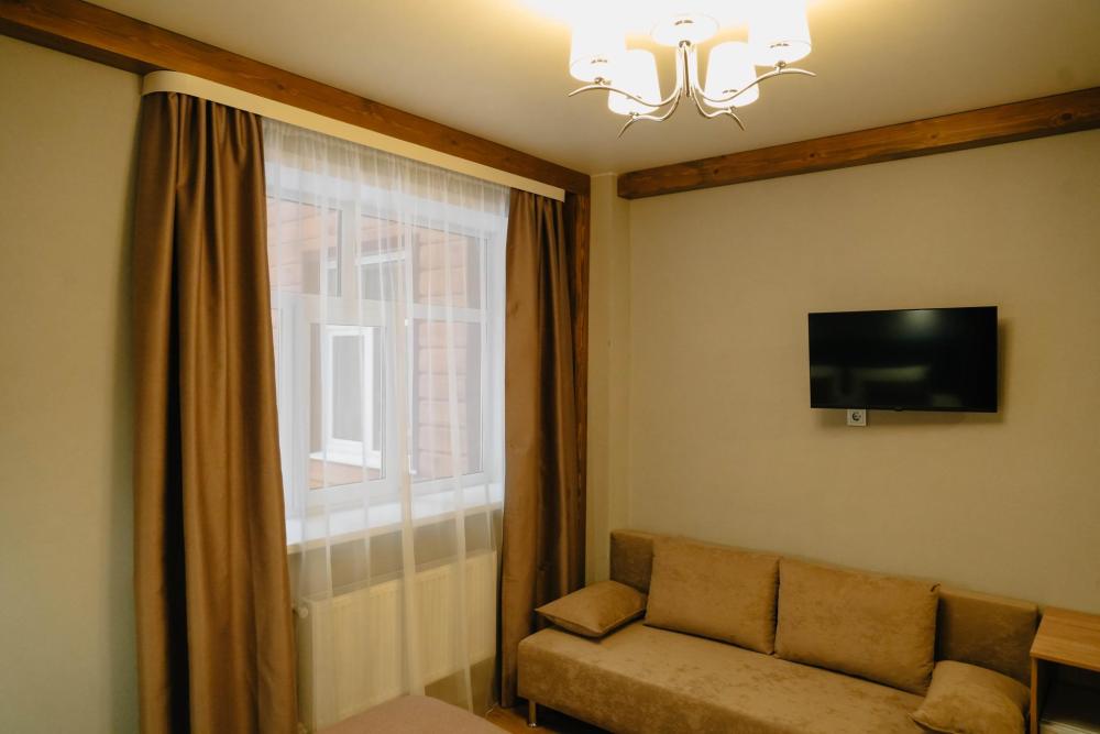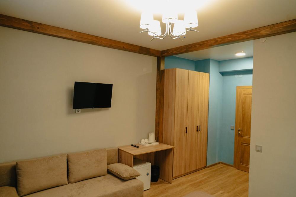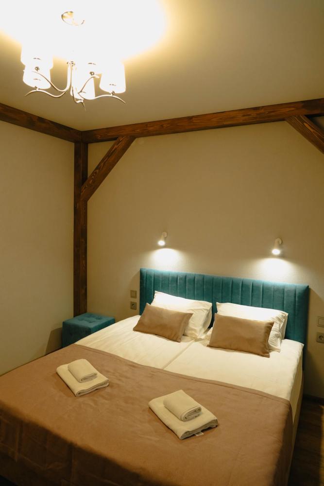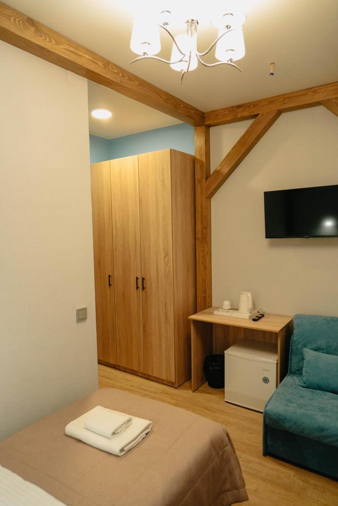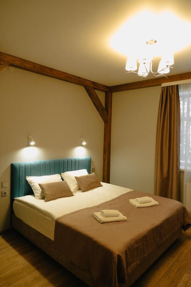 Номера расположены в отдельном корпусе. Здание имеет деревянную отделку и аккуратное крыльцо. Внутри корпуса расположена просторная гостиная зона, оборудованная мягкой мебелью и столовой. В номере есть 2 односпальные кровати с мягким постельным бельем, шкафы для хранения вещей и телевизор, отдельный санузел с душевой кабиной.