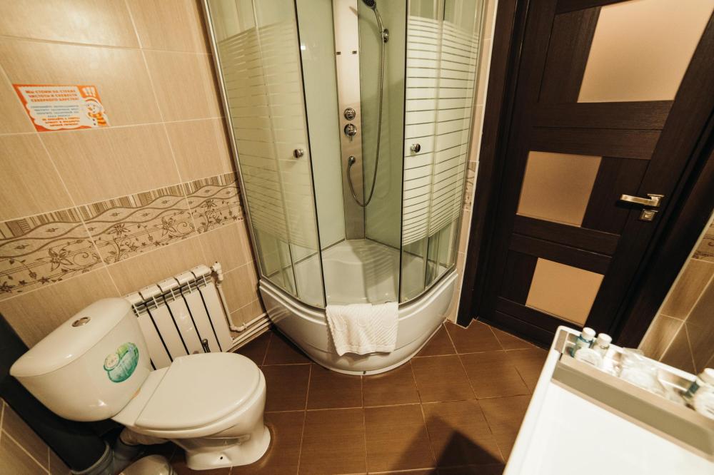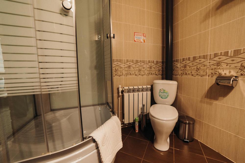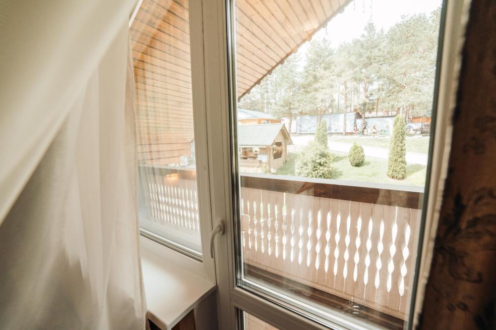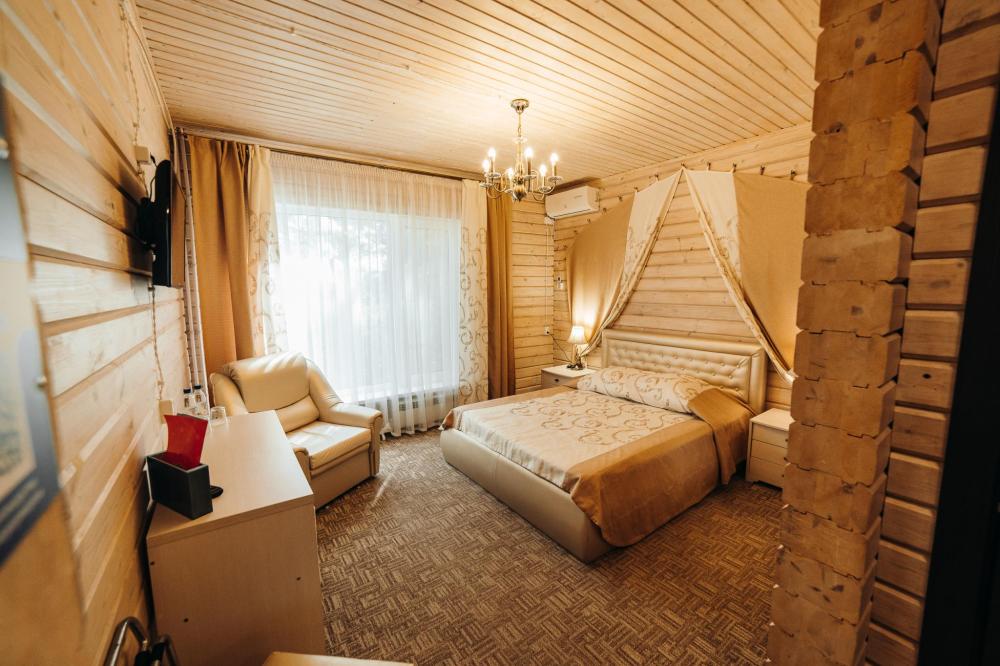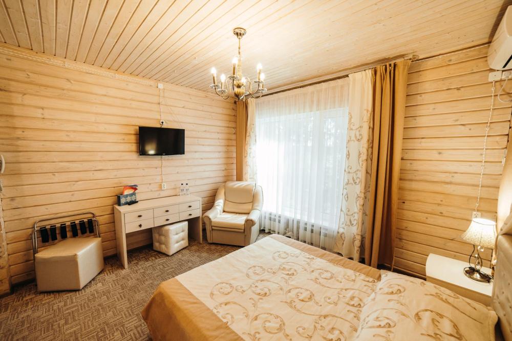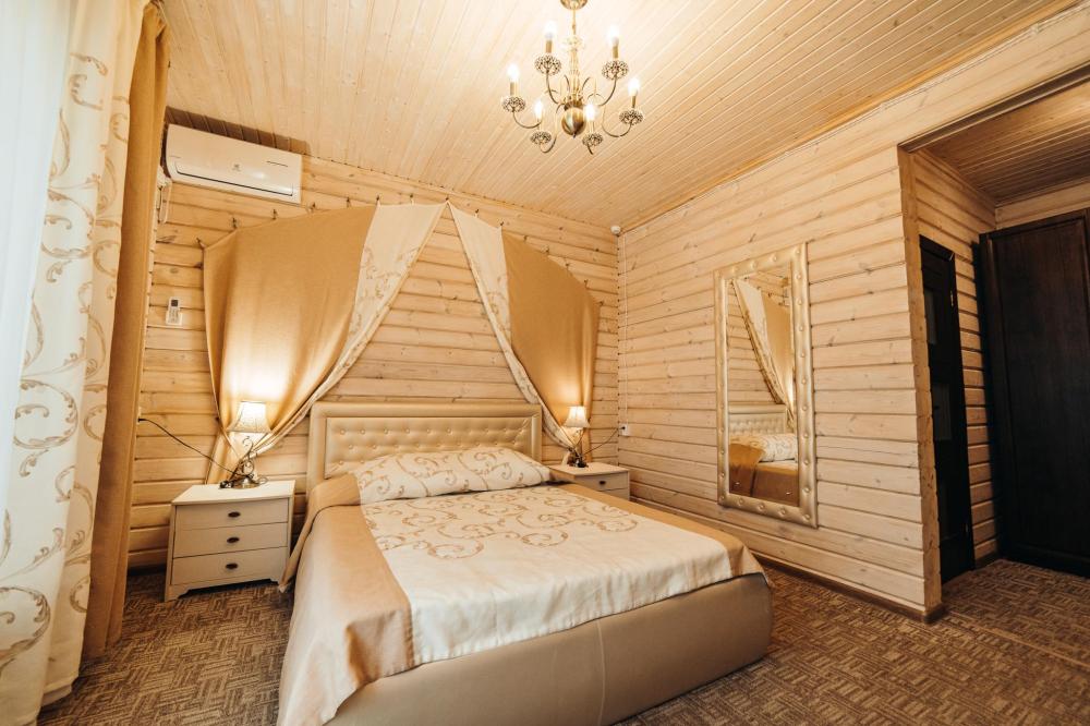Уютный двухместный номер первой категории (стандарт) с двуспальной кроватью. Номер находится на 1 этаже двухэтажного коттеджа. Также в коттедже есть общая гостиная-кухня и бильярд.