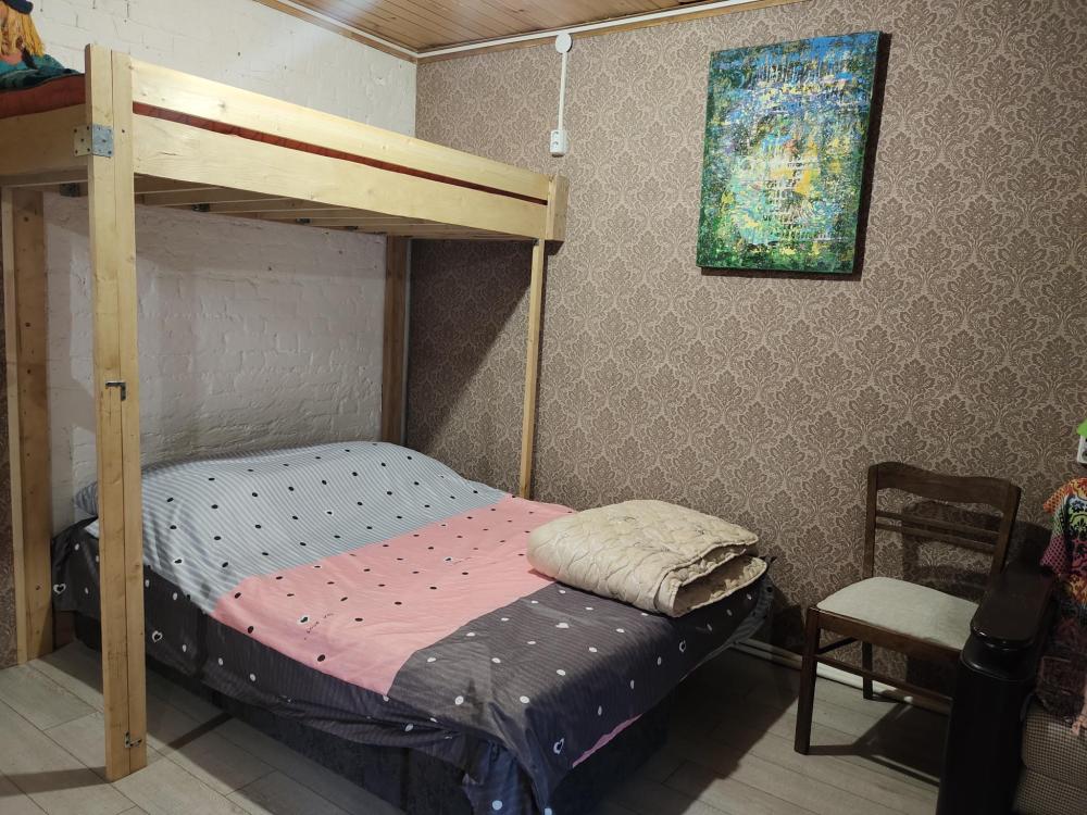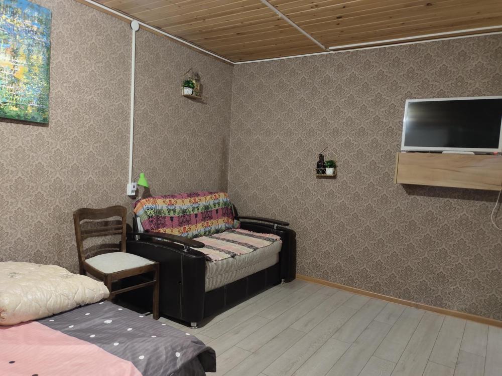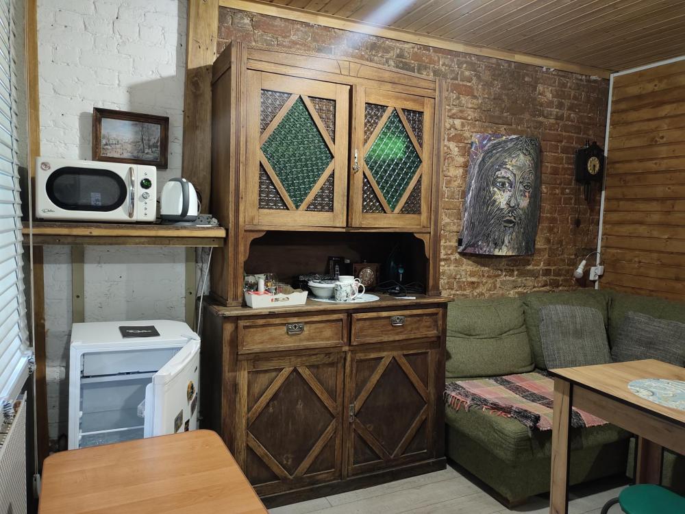 Номер студия Винтаж общей площадью 36 кв.м. для размещения до 3-х гостей. Для комфортного проживания гостей номер оснащен всем необходимым: двуспальная кровать 140Х195, диван, телевизор, микроволновка, электроплитка, чайник, холодильник, фен, санузел с душевой. Гостям предоставляется постельное белье, утюг, доп посуда, полотенца, шампунь, гель для душа, кондиционер, зубная щетка, тапочки.