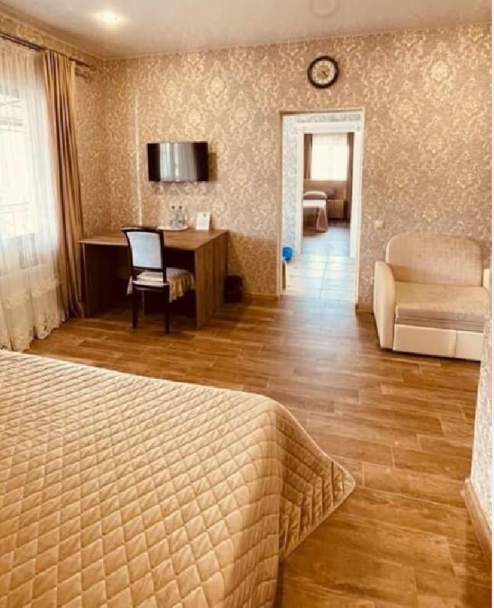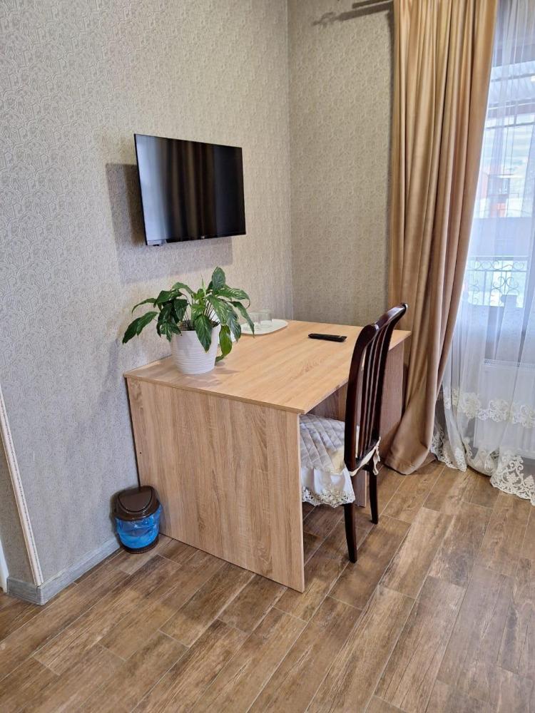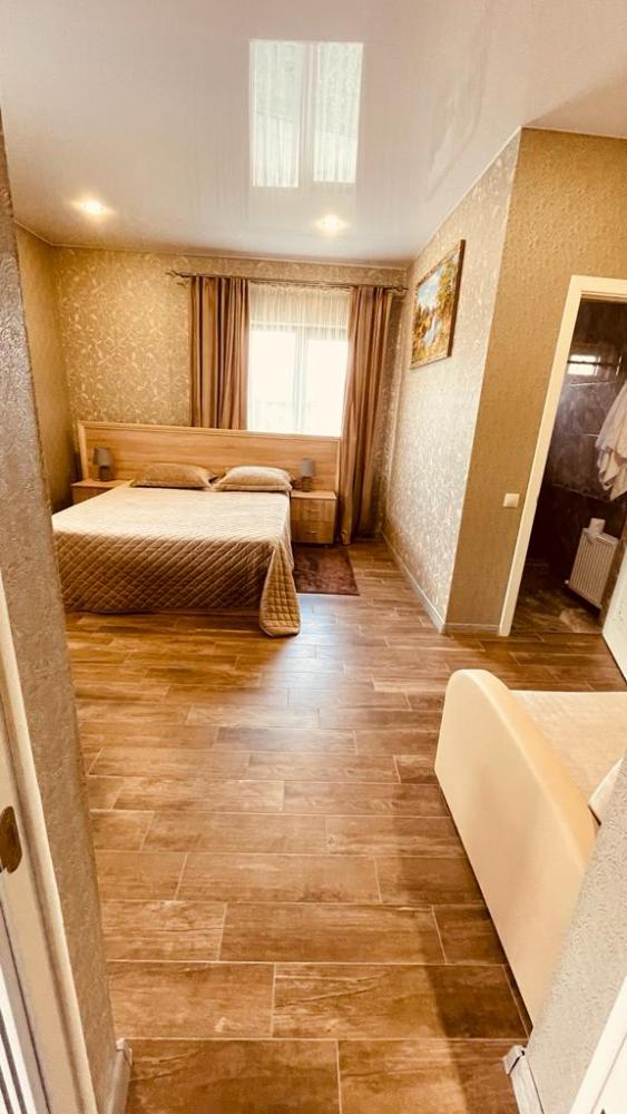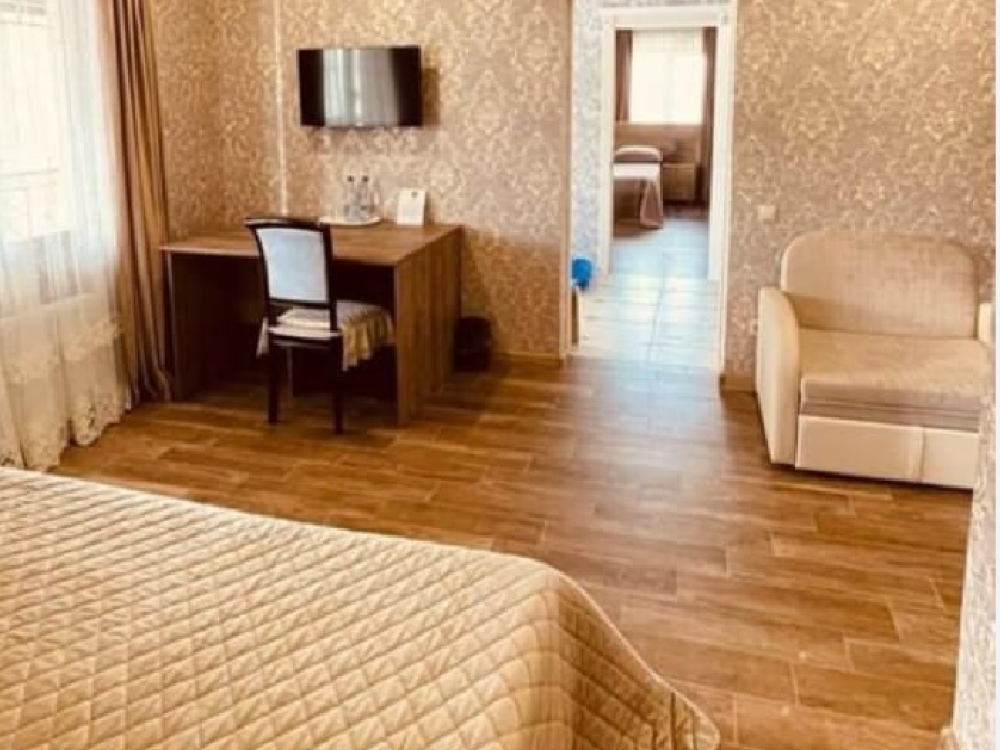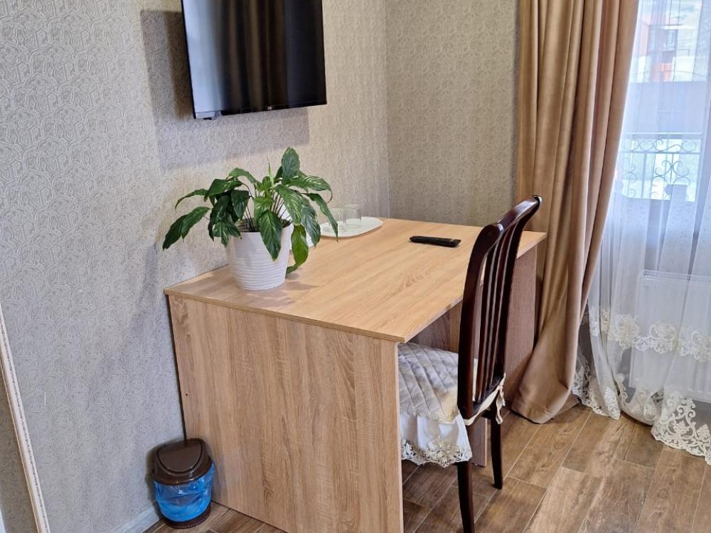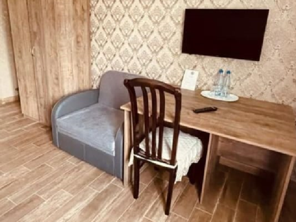 Комната стандарт с 1 двуспальной кроватью и диваном, рассчитанная на 3 гостей. В комнате имеется все необходимое для комфортного проживания: рабочее место, шкаф, телевизор, санузел с душем.