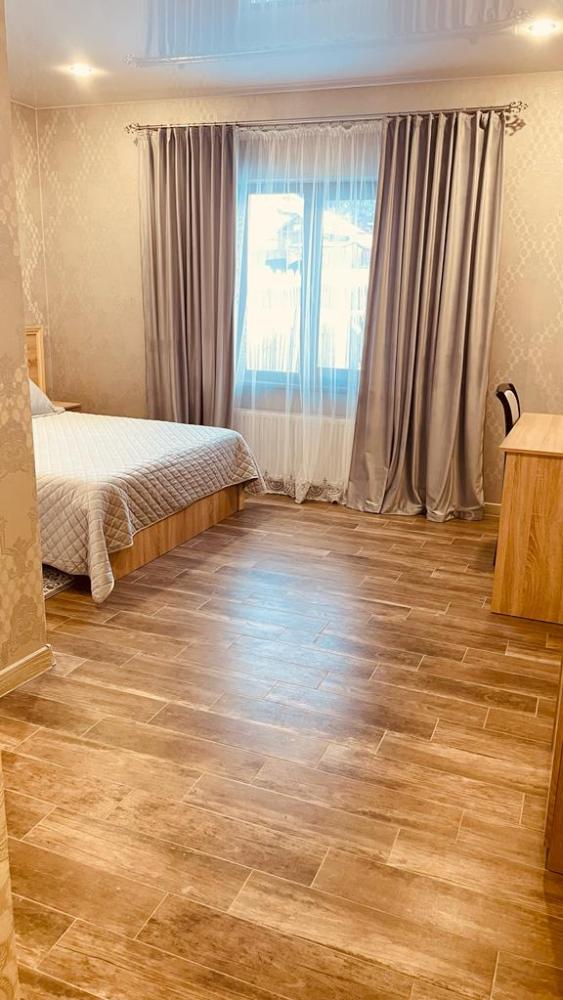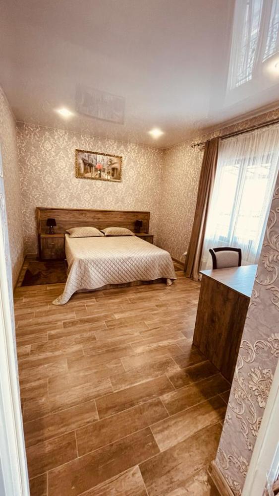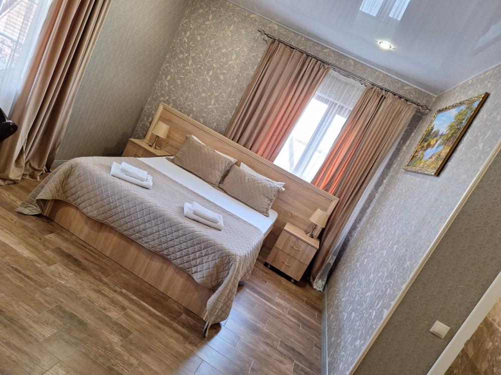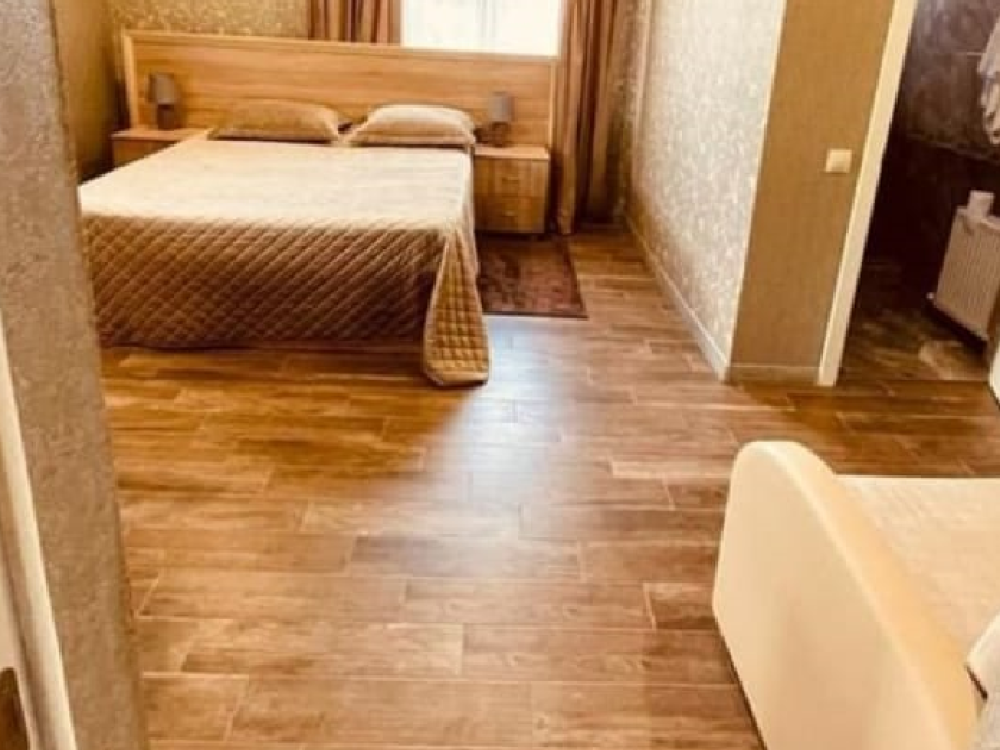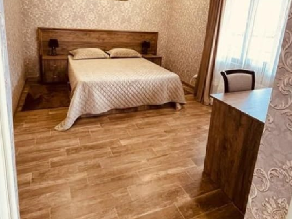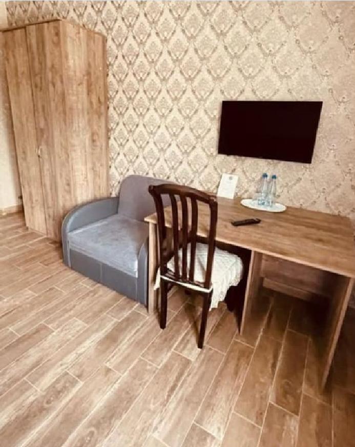 Комната стандарт с 1 двуспальной кроватью и диваном, рассчитанная на 3 гостей. В комнате имеется все необходимое для комфортного проживания: рабочее место, шкаф, телевизор, санузел с душем.