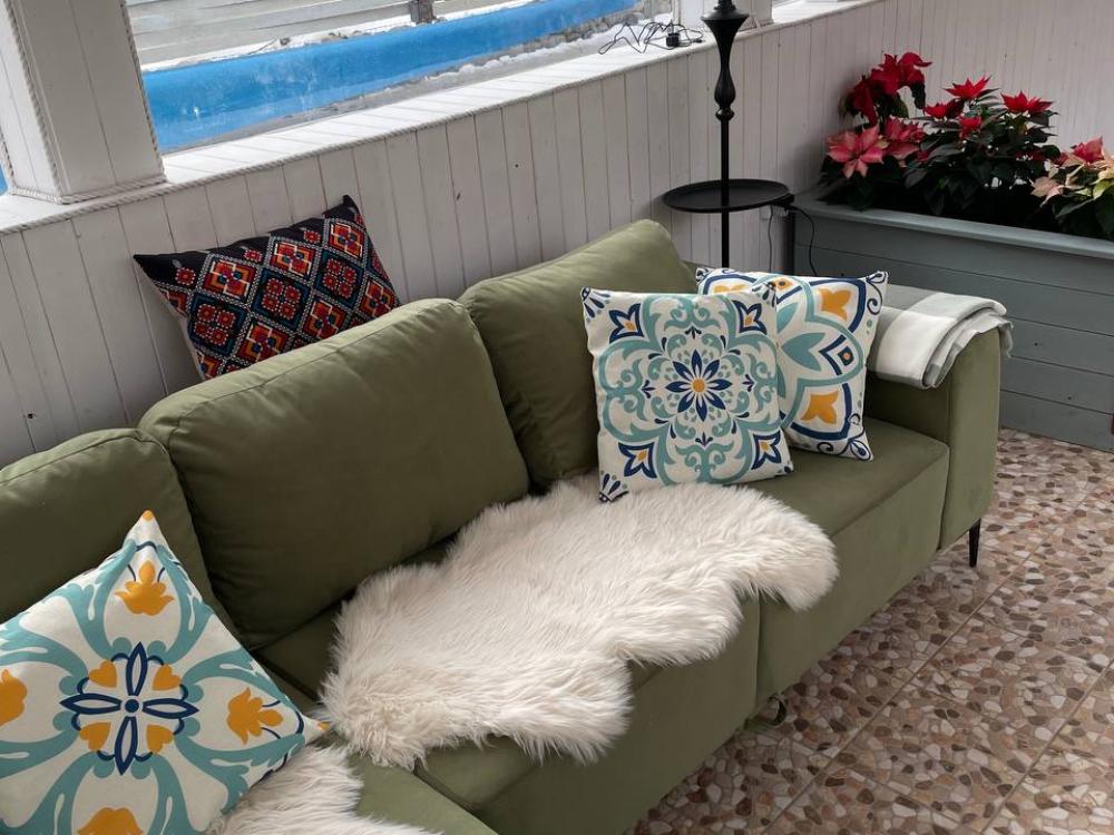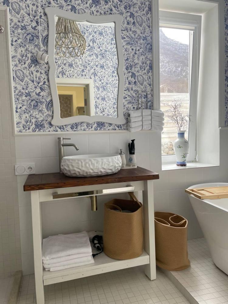 В доме есть всё для комфортного проживания. Планировка: 1 этаж, 2 отдельные спальни, гостиная-столовая с выходом на веранду. Спальные места: две комфортные двуспальные кровати и чистый комплект постельного белья для каждого гостя. Кухня: полностью оборудована (холодильник, плита, духовка, вся необходимая посуда и утварь, чай/кофе). Удобства: стиральная машина, утюг, фен, бесплатный Wi-Fi, телевизор. Детали: предоставляем банные полотенца, а также базовые средства гигиены (жидкое мыло, шампунь, туалетная бумага). Территория: собственная парковка у дома, зона отдыха с шезлонгами у бассейна.