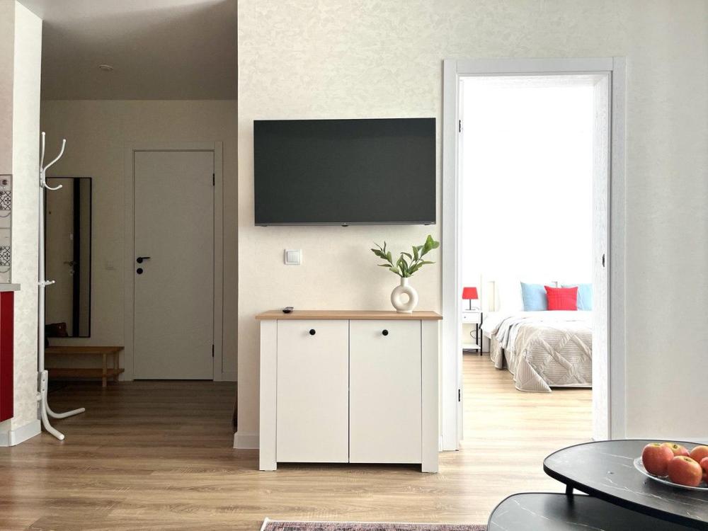 Квартира в новом доме ЖК «Тихий центр». Наша уютная квартира с комфортом вмещает до 4-х гостей. В квартире есть всё для вашего комфорта: удобная двуспальная кровать, раскладной комфортный диван, телевизор, быстрый Wi-Fi, холодильник, СВЧ-печь, варочная поверхность, духовой шкаф, стиральная машина, утюг, гладильная доска, фен, чайник, кофемашина, посуда, предметы гигиены, постельное бельё и полотенца.