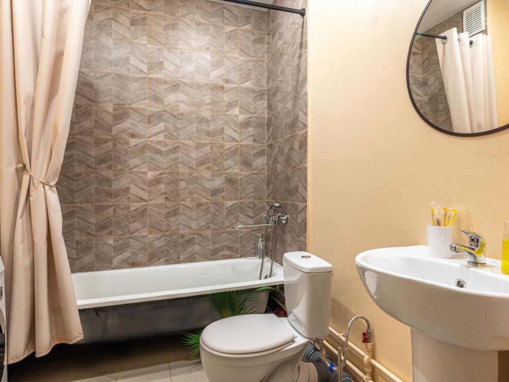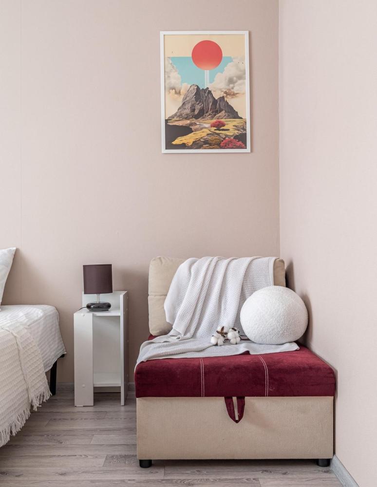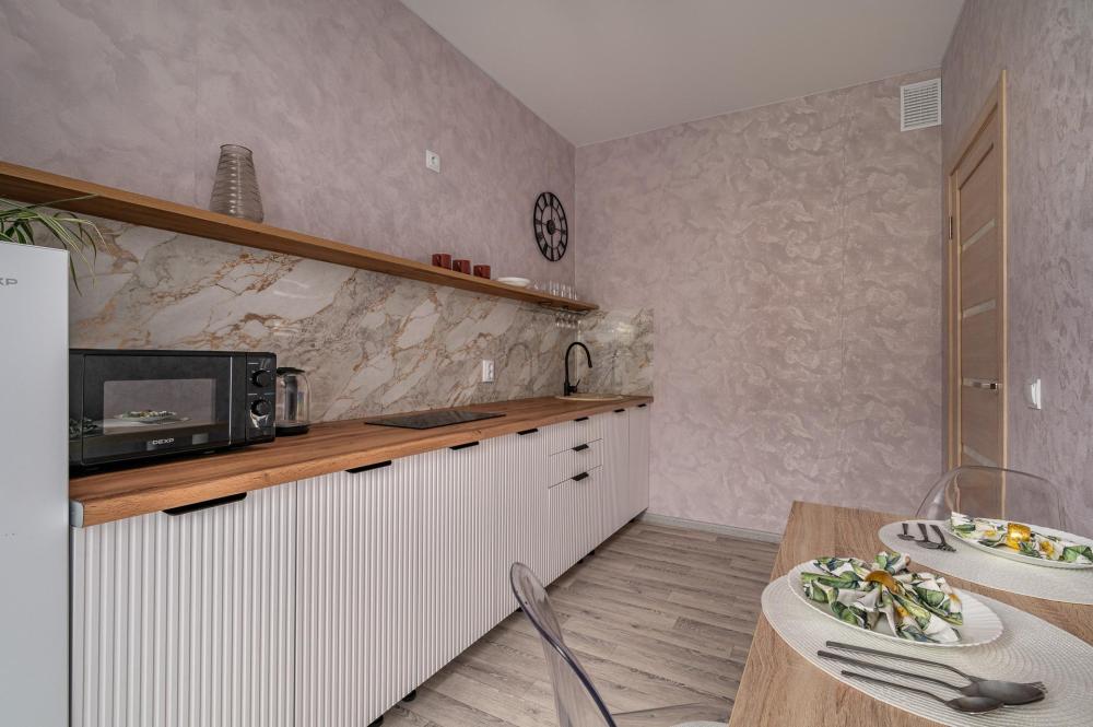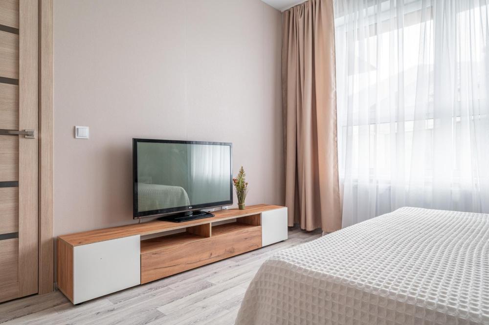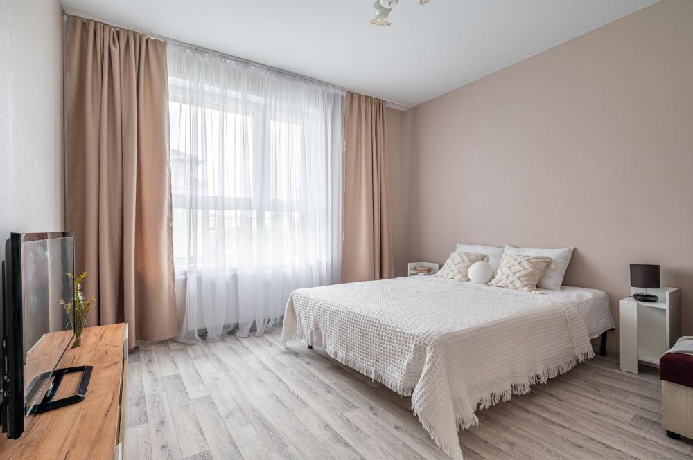 В квартире есть все для комфортного проживания 5-х человек: двуспальная кровать 2 шт, кресло - 1 шт, комод для хранения вещей, WI-FI, TV Кухня: электрическая плита, СВЧ печь, холодильник, чайник, фильтр для воды, набор посуды. Ванная комната: ванная, стиральная машина, полотенца, утюг, гладильная доска, сушилка, фен, гель для душа, шампунь, мыло, зубная паста. Уважаемые гости при необходимости размещения 2 гостей на отдельных спальных местах, пожалуйста указывайте данное пожелание в заявке на бронирование. По стандарту подготавливаем спальные места на пару. При размещении 2 человек на отдельных спальных местах предусмотрена доплата в размере 300 руб.