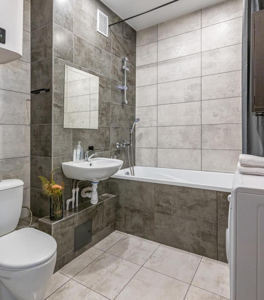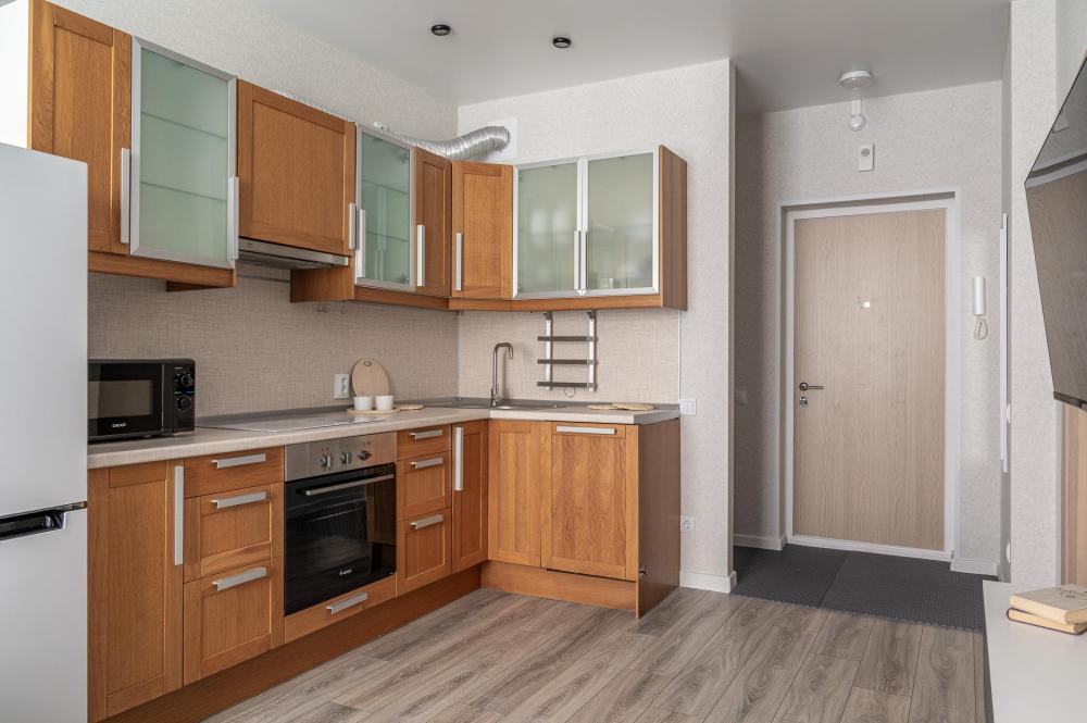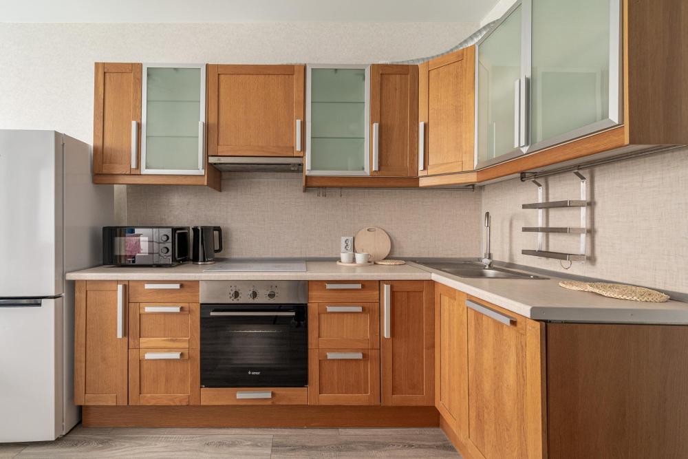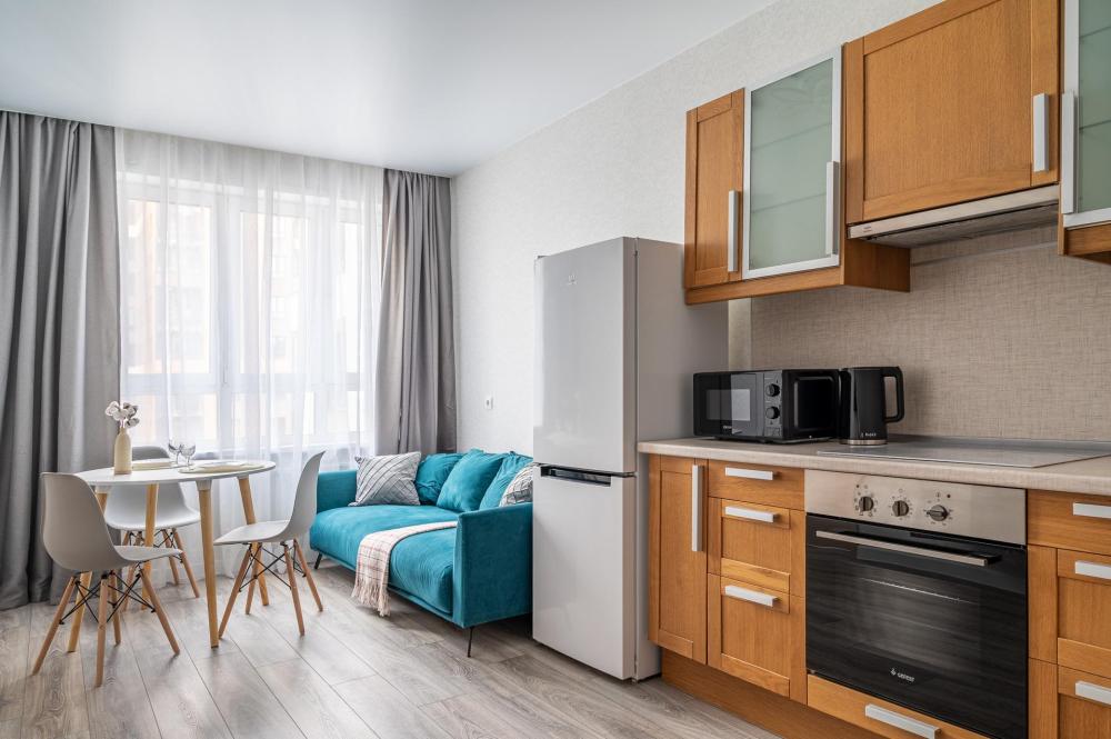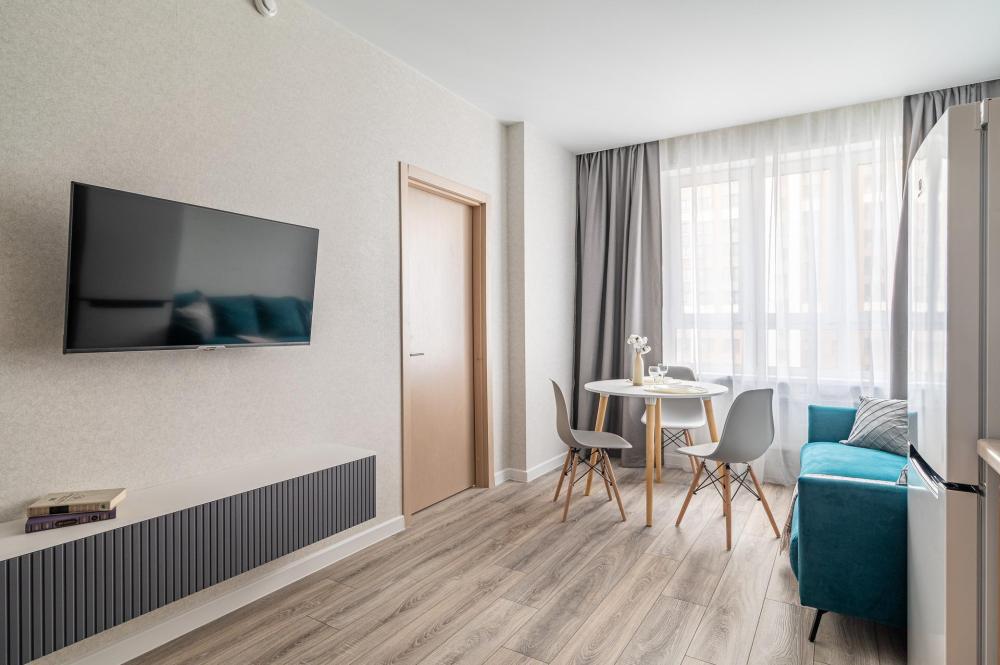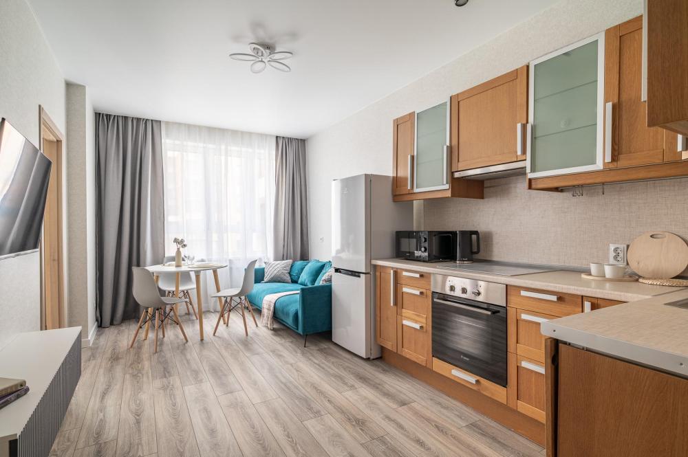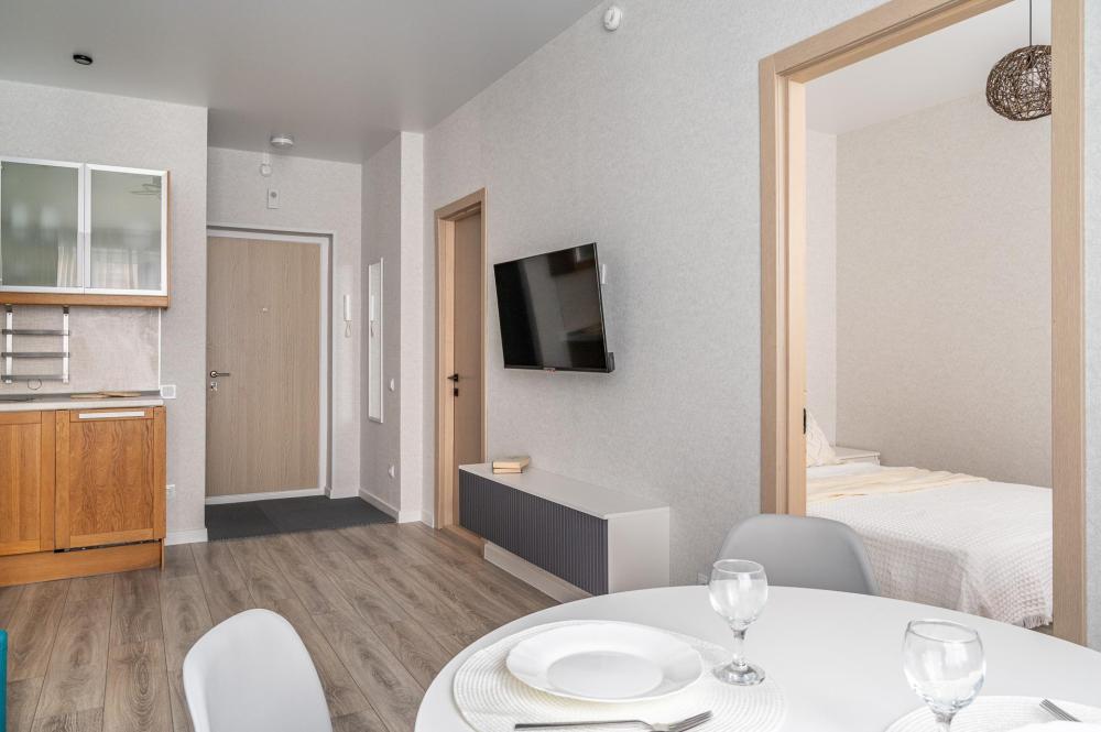 В квартире имеется все необходимое для комфортного прибывания на один или несколько дней. Цифровое TV, просторная обустроенная кухня, холодильник. Вся необходимая мебель для проживания: изолированная комната с двуспальной кроватью, места для хранения вещей, комфортный диван и обеденная зона. Кухонный уголок со всей необходимой посудой для приготовления ваших кулинарных шедевров; необходимая бытовая техника и приборы: телевизор, фен, утюг, стиральная машина, плита, микроволновая печь, скоростной WI-FI, Smart TV, полотенца, постельное белье, шампунь/гель/мыло