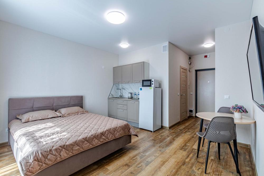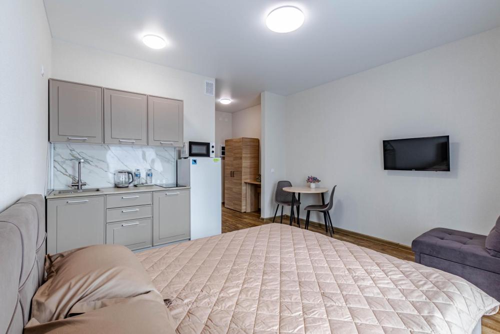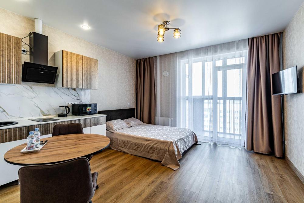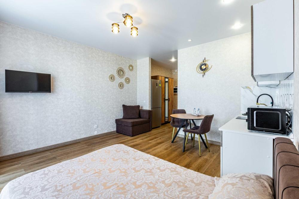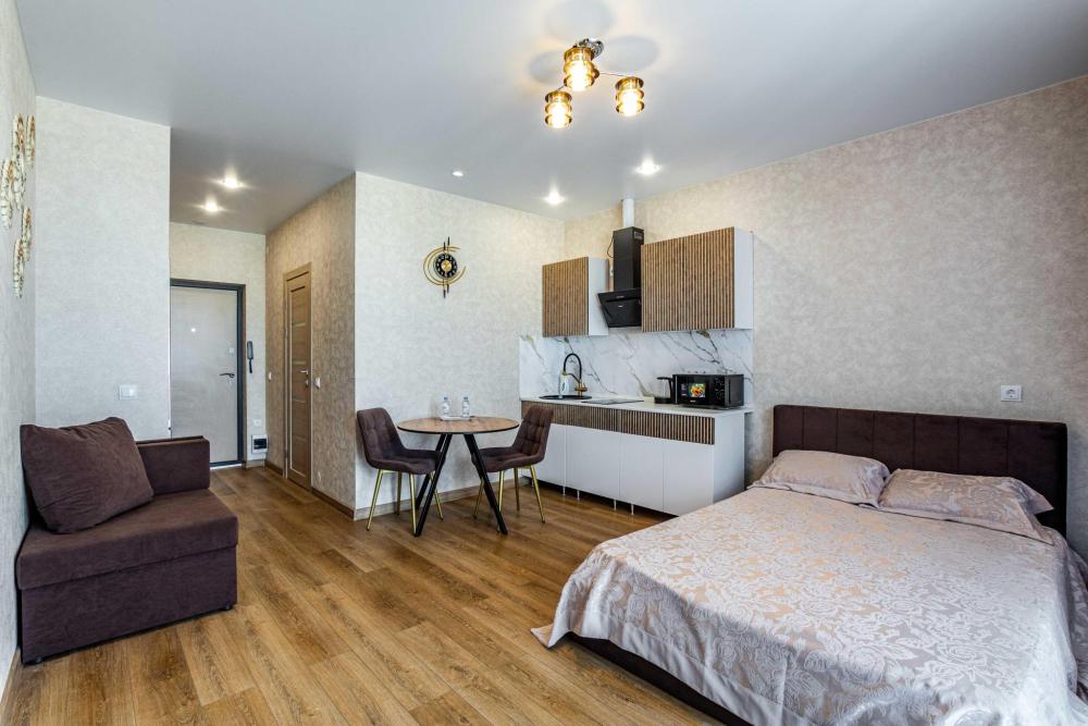 Всё включено — бытовая техника, быстрый Wi-Fi, удобная укомплектованная всем необходимым кухонная зона и комфортная спальная зона: двуспальная кровать с ортопедическим матрасом и постельным бельем из 100% хлопка для крепкого сна и кресло-кровать (размещение до трех человек). -Стильная лоджия с зоной для курения и отличная атмосфера -Водонагреватель, тапочки, полотенца, средства гигиены (зубная паста и щетки, гель для душа, шампунь) — всё уже в наличии -Парковка рядом с домом -Отчетные документы для командированных — по запросу