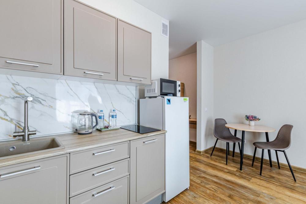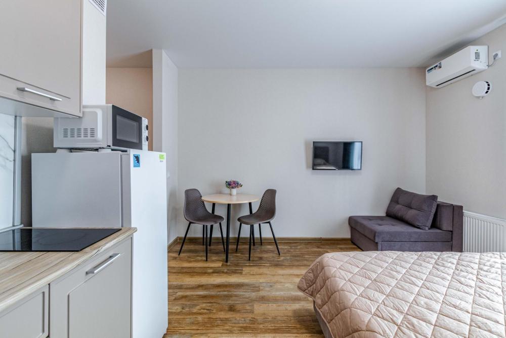 Что вас ждет: ✨ Всё включено — бытовая техника, быстрый Wi-Fi, удобная укомплектованная всем необходимым кухонная зона и комфортная спальная зона: двуспальная кровать с ортопедическим матрасом и постельным бельем из 100% хлопка для крепкого сна и кресло-кровать (размещение до трех человек). ✨ Стильная терраса с зоной для курения и отличная атмосфера ✨ Водонагреватель, тапочки, полотенца, средства гигиены (зубная паста и щетки, гель для душа, шампунь) — всё уже в наличии ✨ Парковка рядом с домом ✨ Отчетные документы для командированных — по запросу