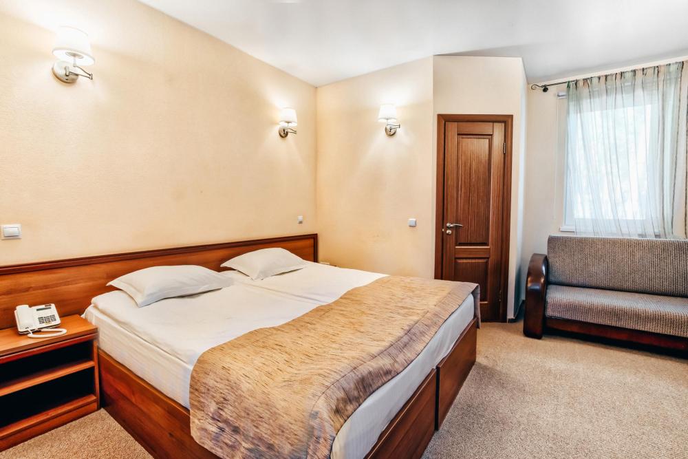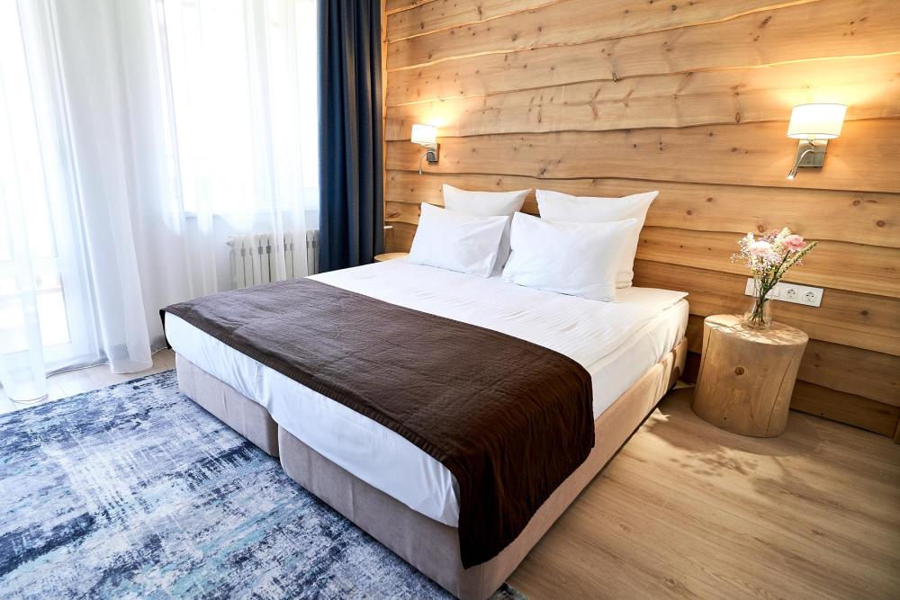Шале - это уютный домик посреди соснового леса. Из окон номеров открывается прекрасный вид на живописный лес или благоустроенную территорию отеля. Корпуса «Ганс» и «Франц» покоряют гостей своей простотой, уютом и сдержанной красотой, а также нотками романтичности. В них создается атмосфера комфорта, умиротворенности и настоящего домашнего очага. Номер категории Стандарт с одной двуспальной или двумя односпальными кроватями.