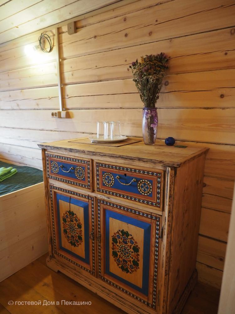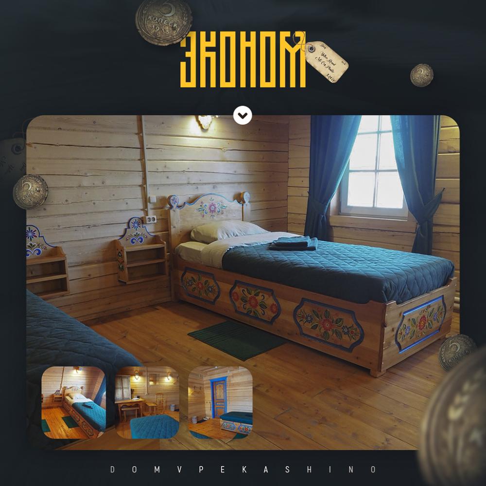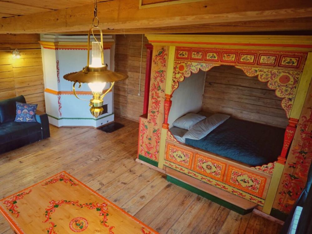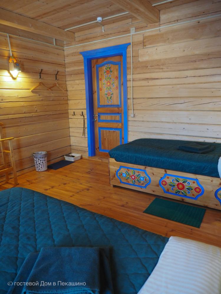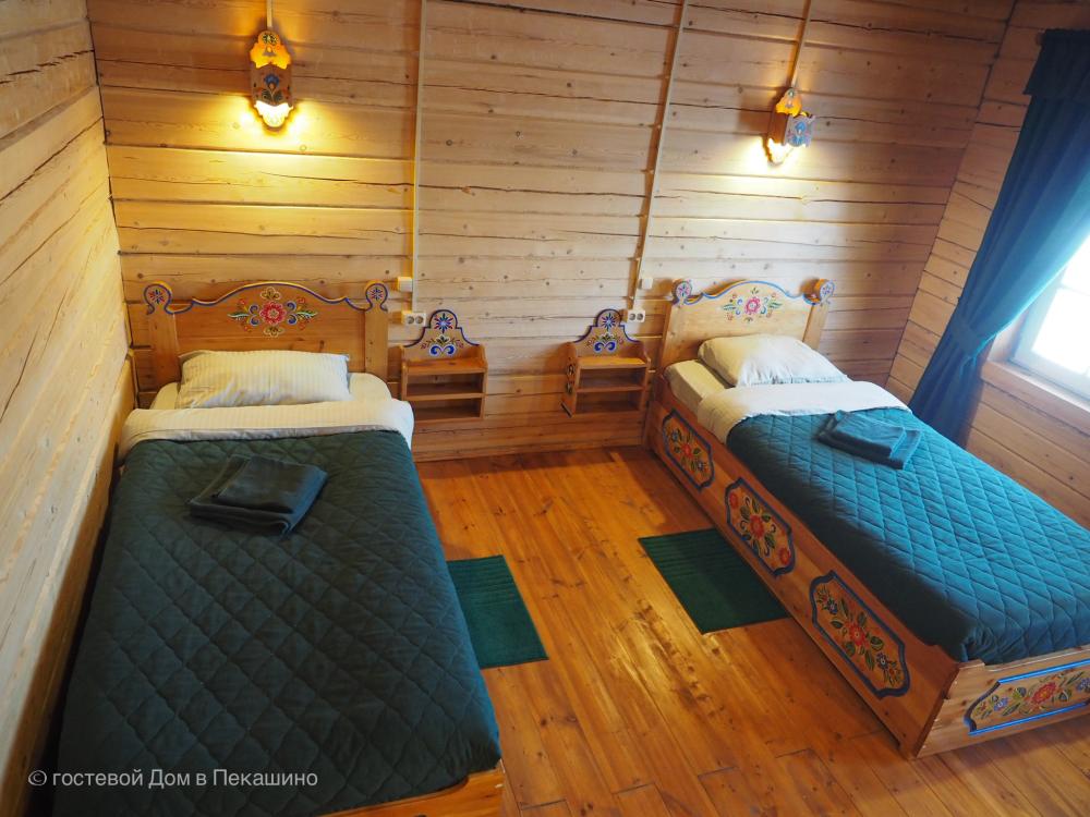 Комната в более молодой части здания. 1 комната; 2 одноместные расписные кровати; бесплатный WI-FI. Комплект постельного белья.Особенности: туалет и душ на этаже. Вид на улочки деревни Верколы, на старинные деревянные дома, вдалеке видна тайга.