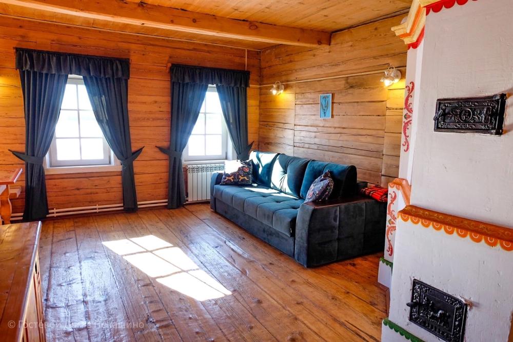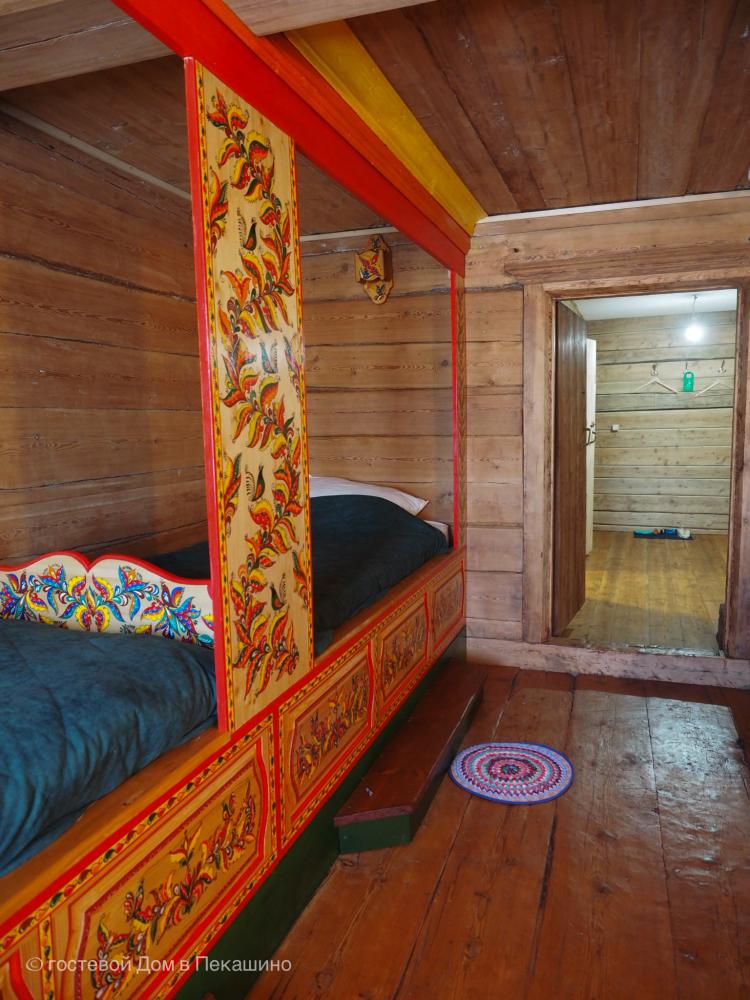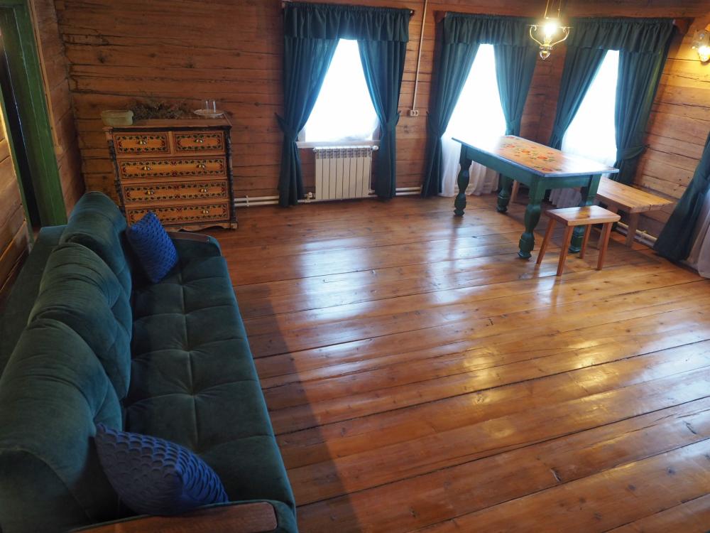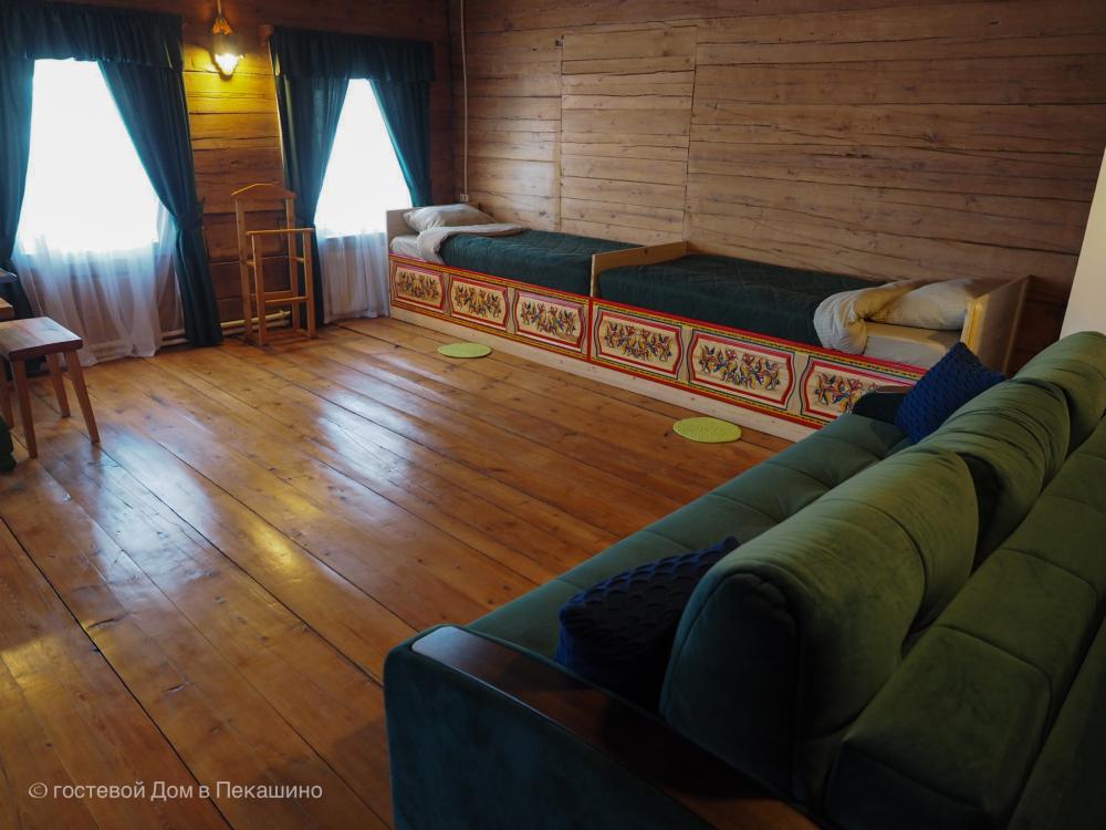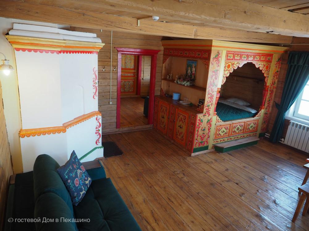 Часть дома, которой более 150 лет. 2 комнаты; 2 двухместных дивана; большая двух местная расписная кровать; душ и туалет в номере; холодильник; бесплатный WI-FI. Комплект постельного белья. Вид на реку Пинегу, Свято-Артемиево Веркольский мужской монастырь, тайгу и поля.