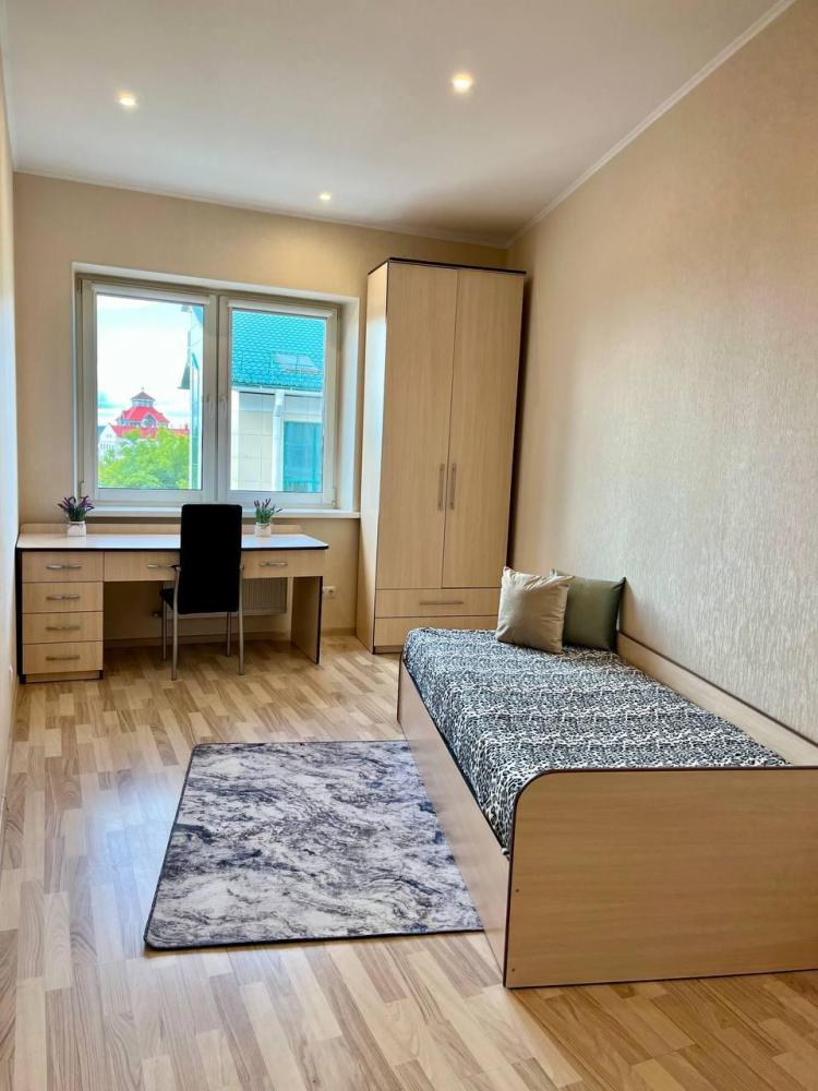 Апартаменты площадью 112м2. В распоряжении гостей 1 двуспальная, 2 односпальные кровати и раскладной диван, уютная кухня и обеденная зона, оборудованная кухня и ванная комната.