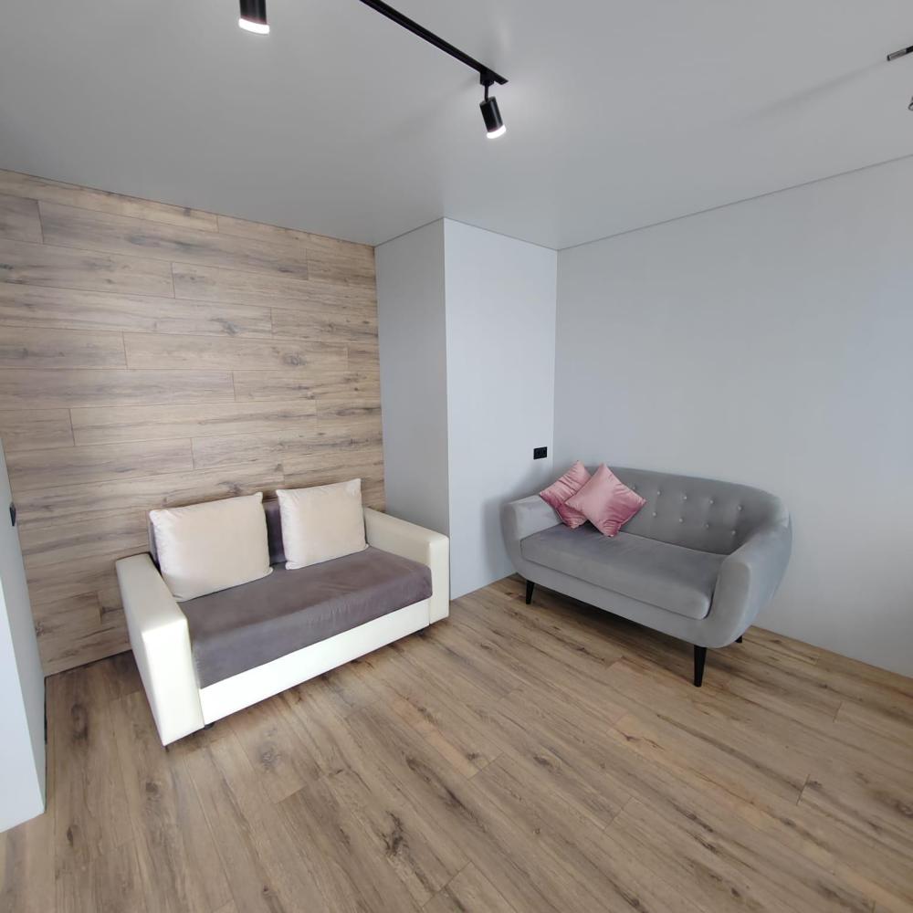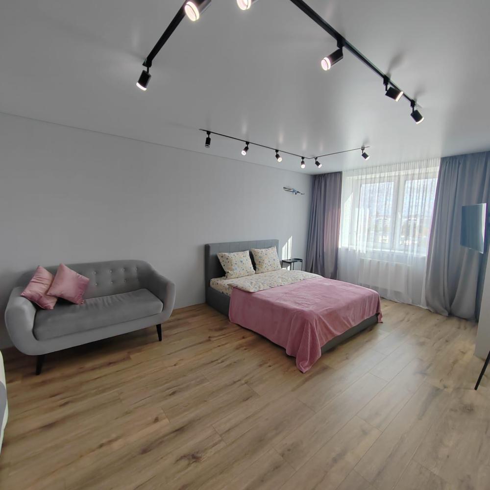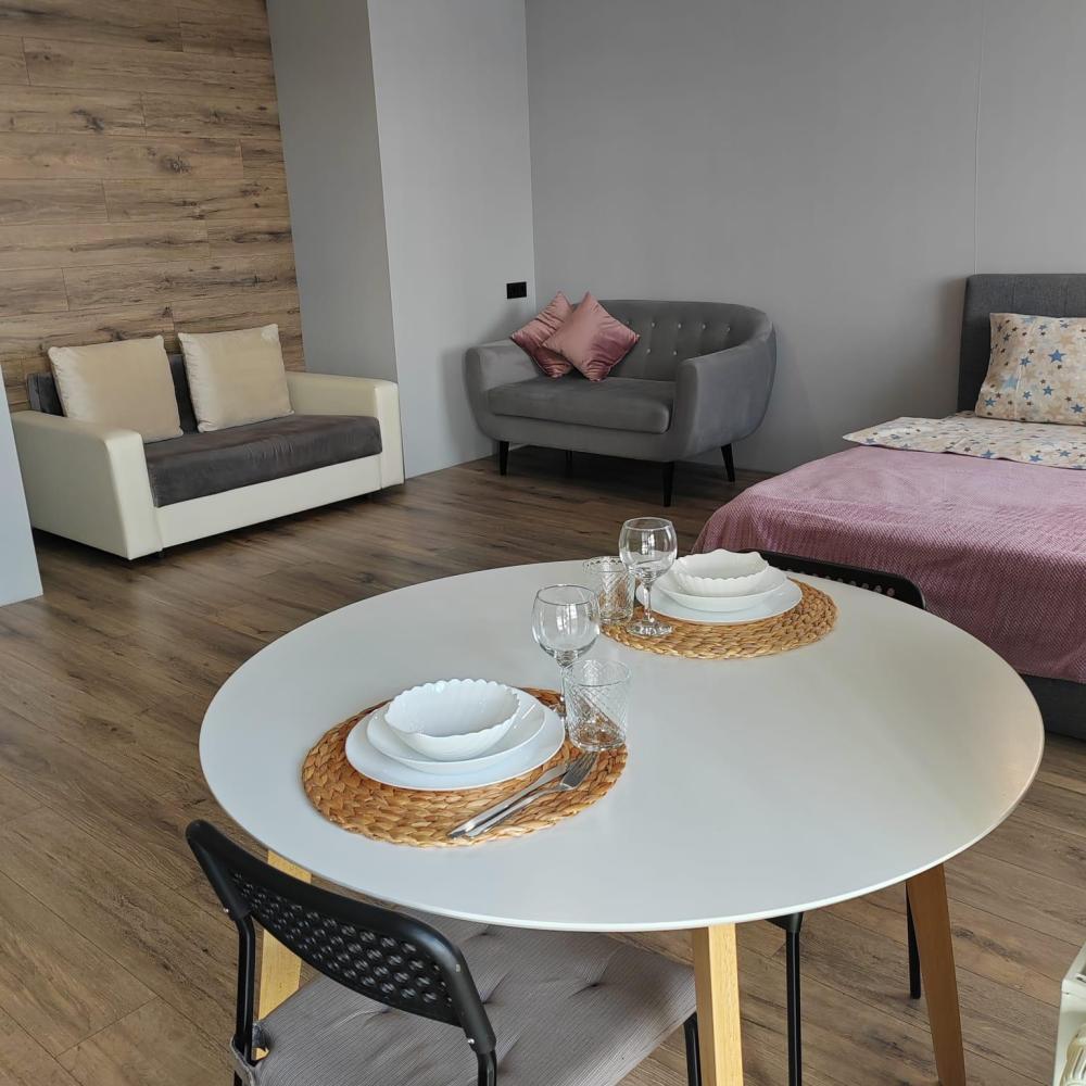 Уютная студия с современным ремонтом, расположена на 10 этаже. В распоряжении гостей двуспальная кровать, раскладной диван, оборудованная кухня и ванная комната.