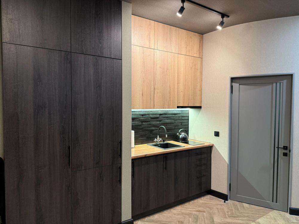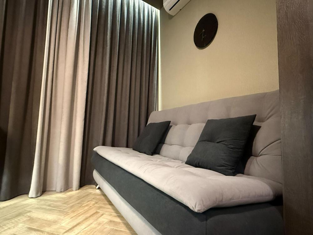 В апартаментах возможно размещение 3 человек. Спальные места: двуспальная кровать, раскладной диван. Кухня оборудована необходимой посудой и техникой: плита, чайник, холодильник. К услугам гостей также стиральная машина, смарт ТВ, подписка OKKO, Wi-Fi, кондиционер, гигиенические принадлежности, полотенца, постельное белье.