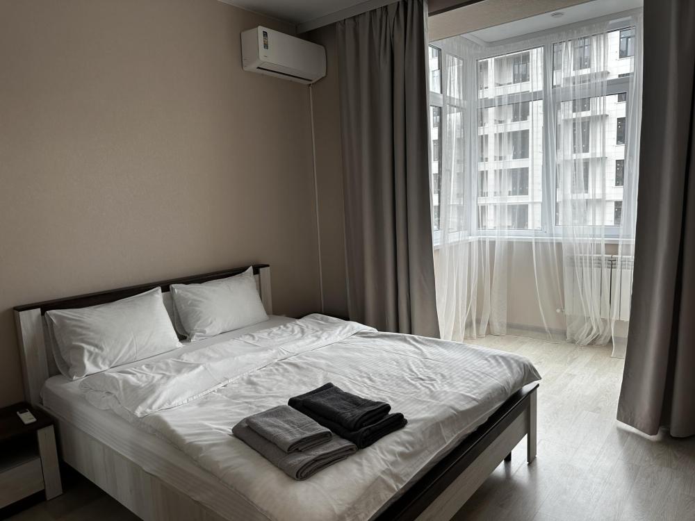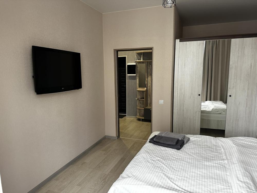 Уютные апартаменты с современным ремонтов, оборудованные всем необходимым для комфортного проживания. В апартаментах: двуспальная кровать, раскладной диван, кондиционер, Wi-Fi, стиральная машина, Smart TV, холодильник, микроволновка, утюг, фен, кухня с обеденной зоной оборудованная необходимой техникой и посудой, санузел с ванной.